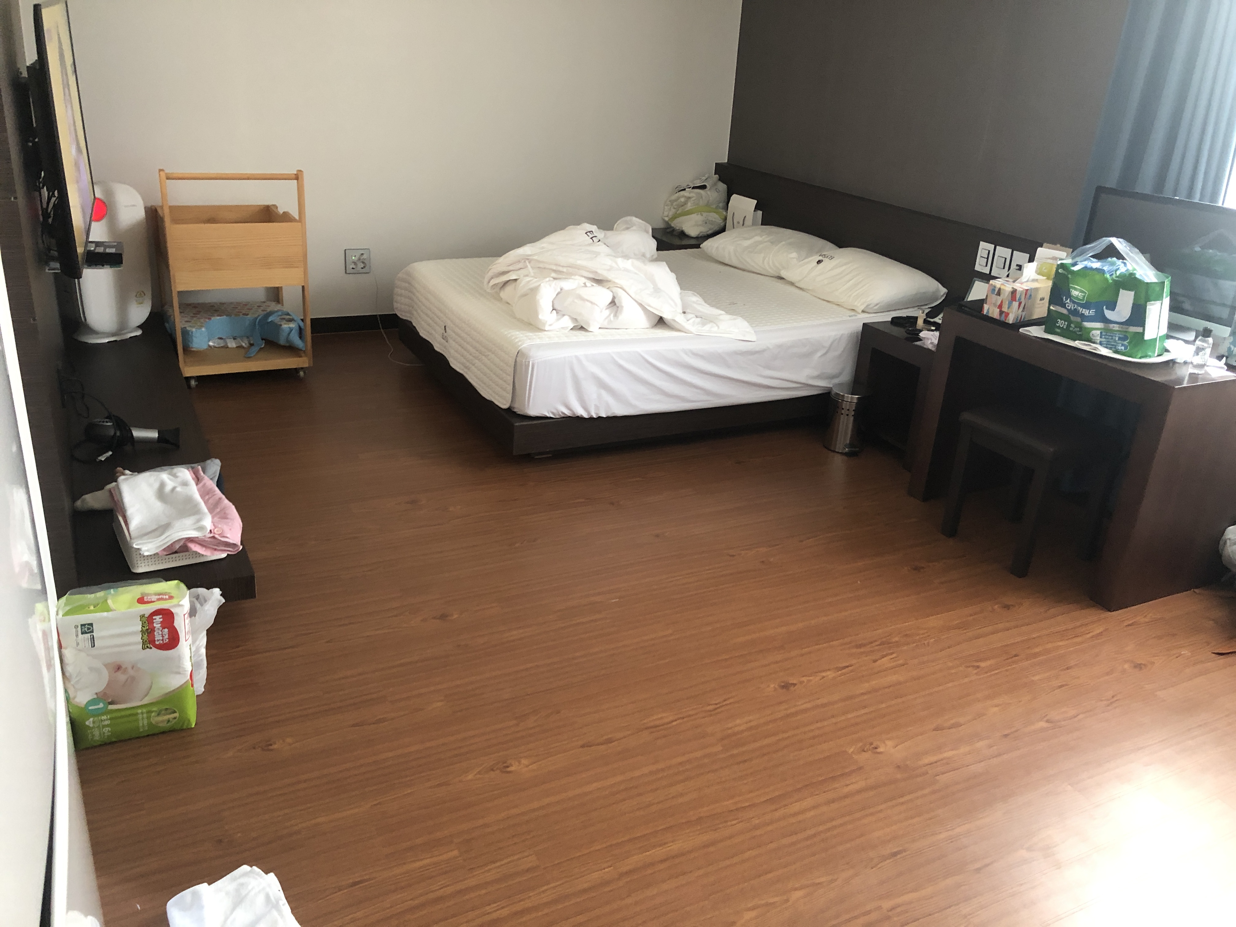 vip 객실 내부입니다. 저희가 정리를 안해서 좀 지저분하네요.. ㅎㅎ 저렇게 생겼다고 보시면 됩니다..! 안에 온도는 너무 뜨거워 저는 안맞더라구요~! ㅎㅎ 엘리시아 산후조리원 원장님이 바뀐지 얼마 안되었다는 말을 들었는데 엄청 열정적입니다.. 부담스러울만큼 너무너무 열정적으로 다가와요..ㅎㅎ 막 간식으로 피자 시켜서 식당에 모여서 얘기도 하고 그러더라구요.. 저는 부담스러워서 안갔습니다..ㅎㅎ 와이프는 보냈지만요~! 특별하게 불편한 점은 없었고 한번씩 쓰레기통을 안비워 주시던데.. 그 정도는 뭐 ㅎㅎ 근데 와이프도 그렇고 저도 그렇고~ 만약 다시 선택하라면 산후조리원 자체를 선택을 한걸 후회..? 돈이 아깝다..? 이렇게 생각했었는데.. 집에 데리고 와보니 ㅎㅎ 아기 보기가 힘들긴 하네요. 와이프와 저도 밤에 잠을 설치면서 보고 있답니다..ㅎㅎ 이걸로 포항 엘리시아 산후조리원 후기 를 마치겠습니다..!