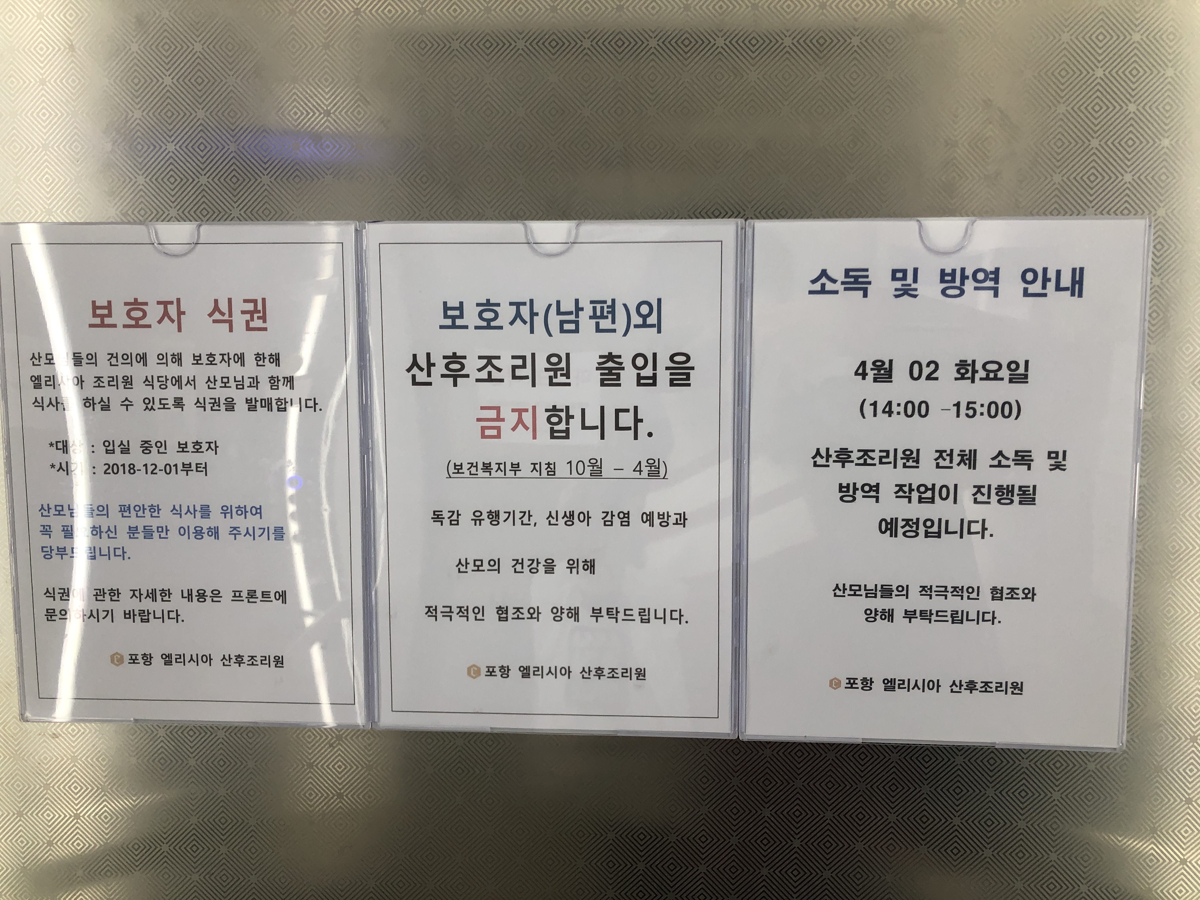 안녕하세요 안녕 피에로입니다. 늦게 글을 쓰긴 하지만.. 저희 찰떡이가 3월 24일 태어났어요. 너무너무 정신이 없어서 이제야 글을 쓰네요 ㅎㅎ. 저희 와이프는 제왕절개로 애기를 출산했습니다. 그래서 병원에 4박 5일 있다가 바로 포항에 있는 산후조리원으로 왔습니다..! 저희가 여성병원에서 출산을 한 게 아니라서 여성병원에 있는 산후조리원을 사용하지는 못했어요..ㅠㅠ 그래서 미리 예약해둔 게 포항 북구 장성동에 있는 엘리시아 산후조리원입니다. 여러 가지 소문이 좋은 편은 아니더라고요. 그래서 문을 닫았다가 가시 개원하고~! 했다는데 포항에 지진이 왔을 때 직원들 대처로 인해서 평판이 많이 좋아졌더라고요..! 어차피 다른 선택도 없고.. 예약을 하게 되었습니다. 보통 2주씩 예약을 하시고~! 식사는 1일 3식