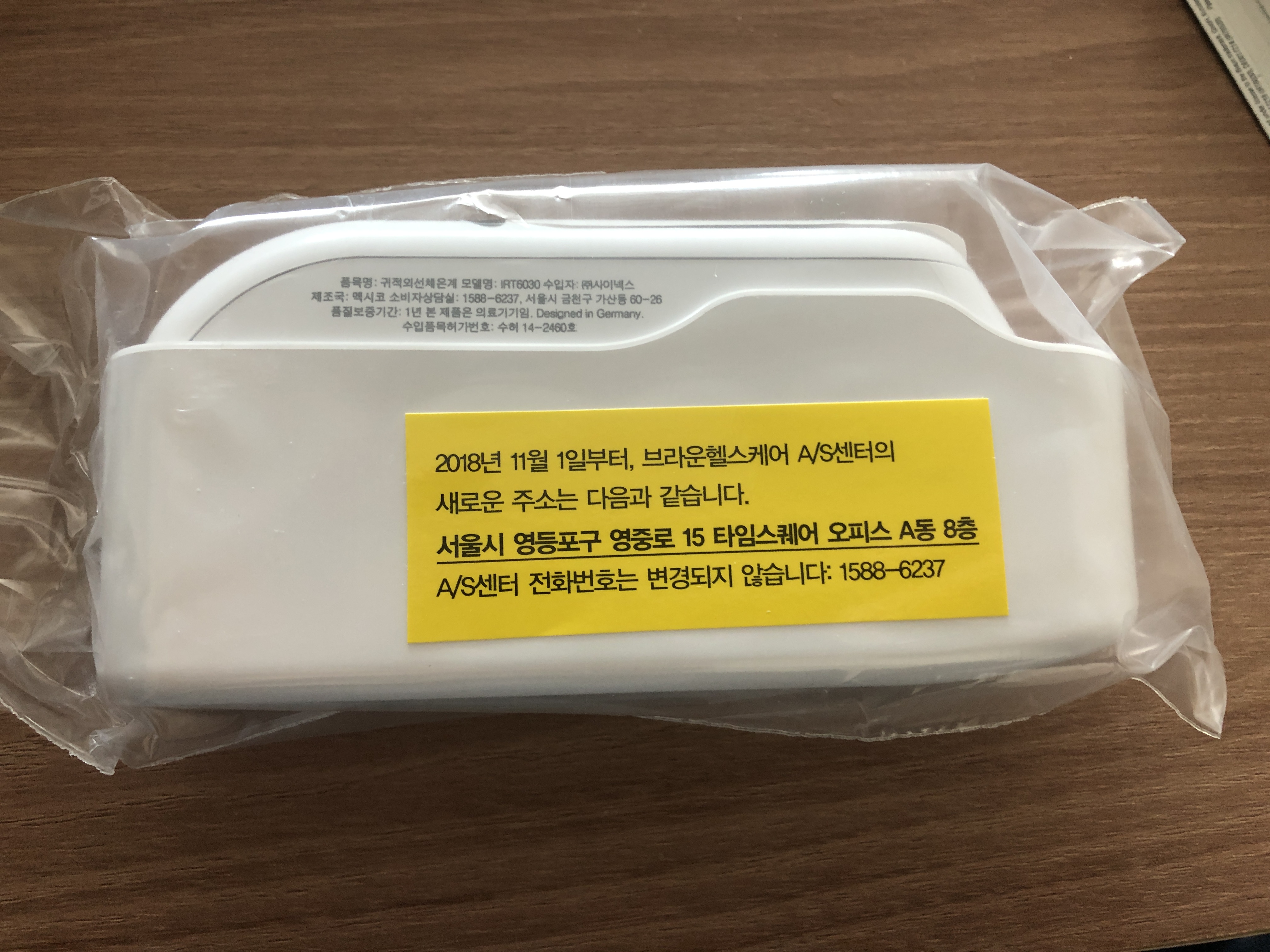 안녕하세요~ 안녕삐에로입니다. 저희 찰떡이.. 이름은 시후로 출생신고를 했어요..! 시후가 태어난지 한달도 안되서 기침과.. 코가 막혀서 킁킁 거리더라구요.. 그래서 급하게 병원을 갔습니다. 가서 체온을 측정하니 37.5도~! 미열이 있다고 하더라구요..ㅠ_ㅠ 그리고 배에 가스가 너무 많이 있다고 합니다 .. 듣고 저희 와이프는 눈물을.. 괜찮다 그래도~! 마음은 안그런가봐요. 선생님이 체온을 자주 측정해서 38도가 넘어가면 바로 병원을 와야 된다고 해서 급하게 체온계를 구입을 했습니다. 아기를 키우는분들은 대부분 이 체온계를 많이 사용하시더라구요. 브라운 체온계 입니다. 시중에 종류가 몇개가 있어요. 근데 다 비슷비슷해요.. 체온을 측정한거를 메모리에 담아서 보여주는게 있고 뭐 기타등등 있다는데 저희는 그냥 간편하게 지금 체온만 측정할 수 있는걸 구입을 했어요.