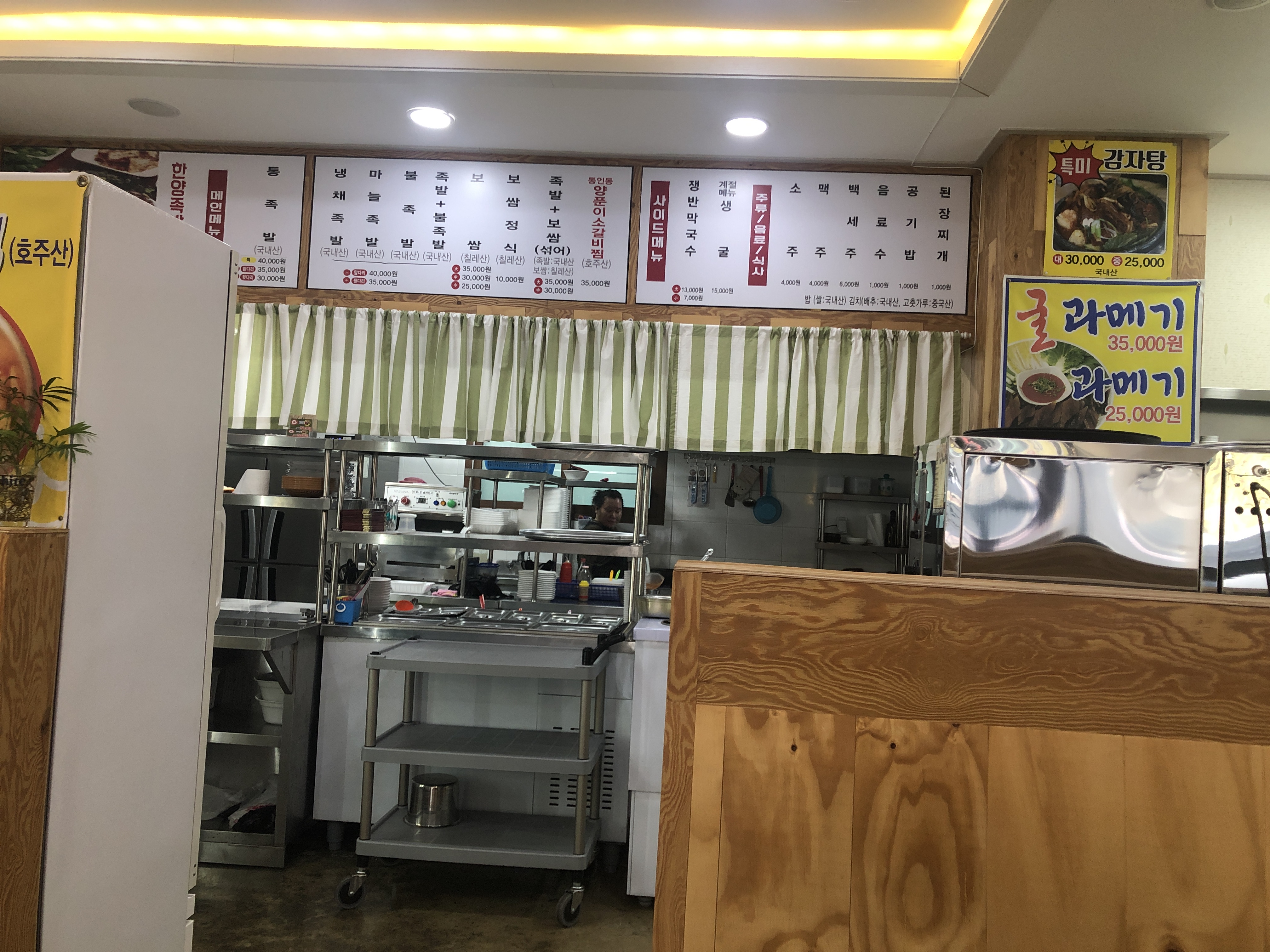 양덕에 있는 한양족발 실내입니다. 내부가 얼마안된 건물처럼 깨끗해요..! 홀에 테이블도 있고 안에 방도 있습니다. 감자탕도 팔고있고~! 계절메뉴로 과메기, 굴 등등 팔고 있네요~! 저는 생굴을 많이 못먹는데 먹고싶긴 하더라구요..! 과메기도 이번 겨울에는 하나도 못먹었는뎁..ㅠ_ㅠ 와이프가 모유수유 끝나고 다시 돌아오는 겨울에 꼭 ..! 먹겠다고 다짐을 하면서 족발 앞다리로 " 대 " 로 주문했습니다..!