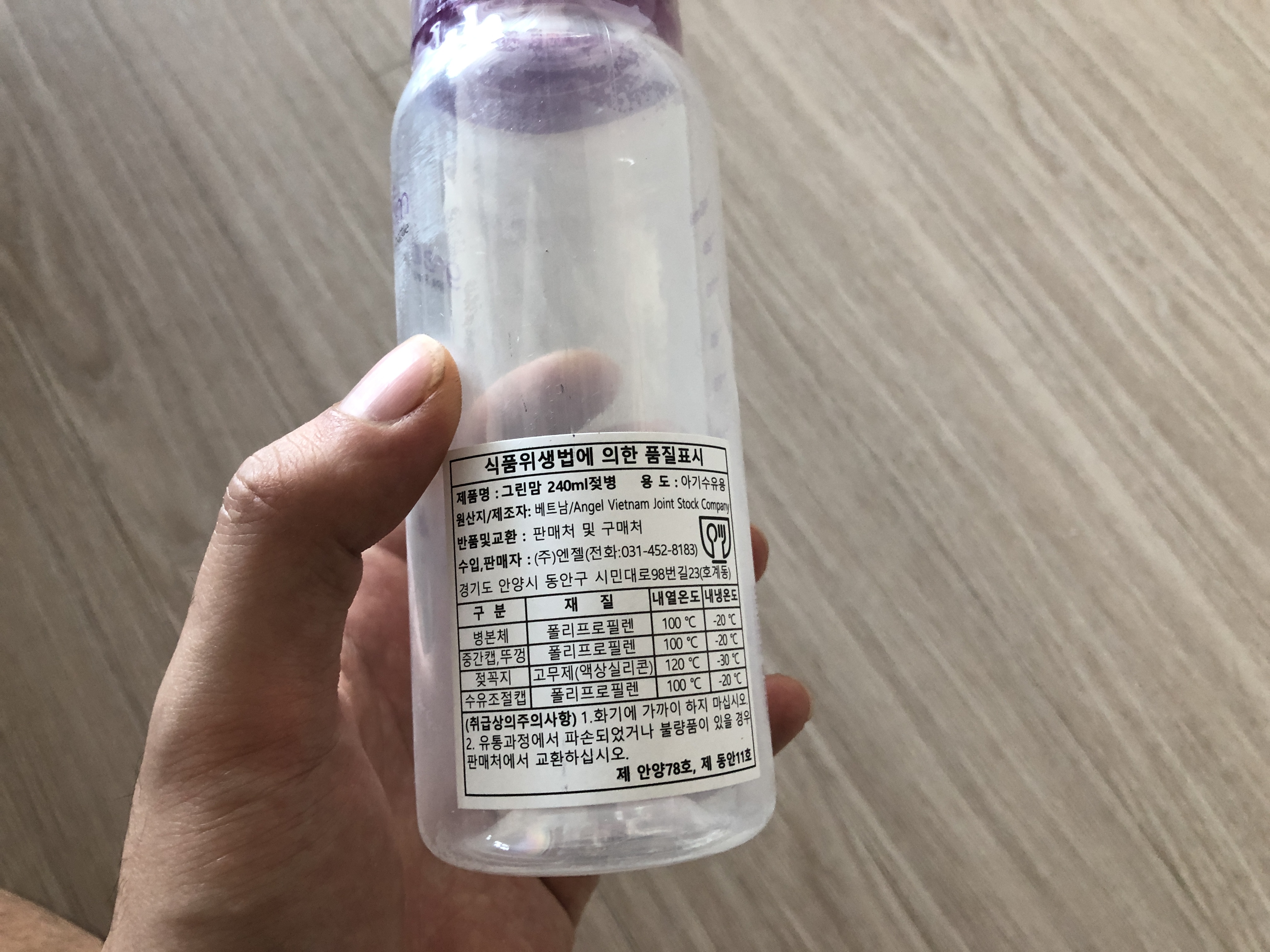 그린맘 젖병의 상자의 모습입니다..! 그린맘 젖병은 플라스틱가이드를 통해 올바른 플라스틱 제품을 만드는데 앞장서고 있다고 합니다. 그린피스가 미래의 자원이라고 칭송한 polypropylene을 사용하여 환경호르몬 BPA로 부터 우리 아이들의 건강을 지켜내자 라고 적혀있네요~! 환경호르몬이 안나온다니 참 다행이네요 ㅠ 요즘 국제적으로 플라스틱에 대한 문제가 커지고 있는데 잘 지켜주셨으면 합니다..! 제조사는 엔젤이고 원산지는 베트남 입니다~!