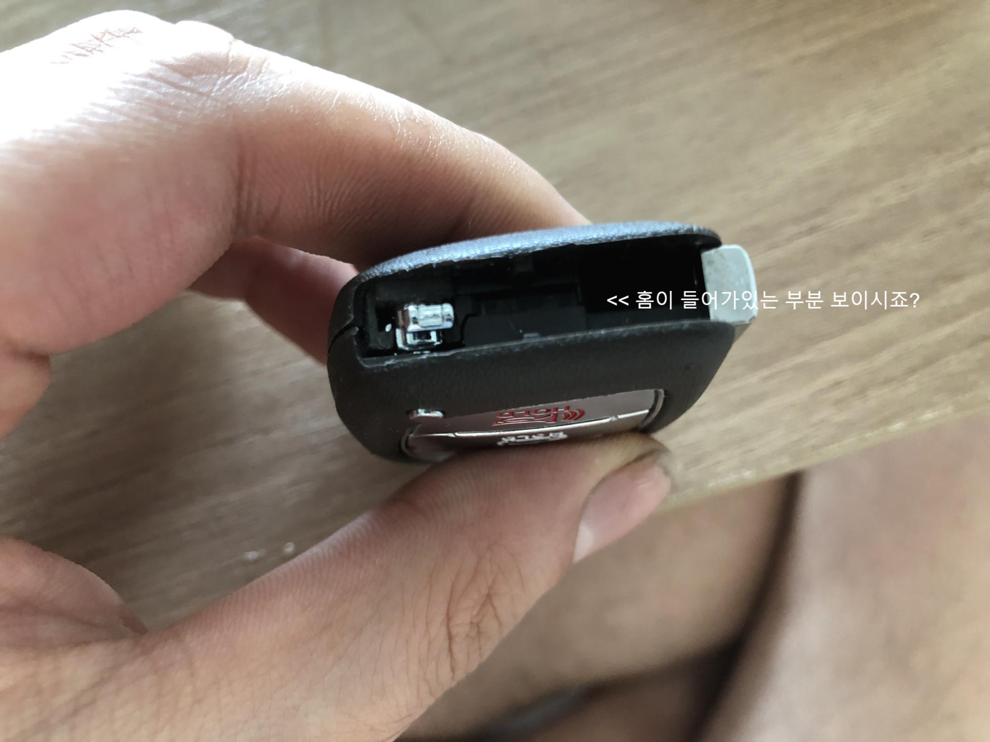 요렇게 열쇠를 빼주도록 합니다..! 열쇠를 빼고나서 저기 홈이 살짝 들어가 있는 부분이 보이실꺼에요~! 근데 꼭 저 부분이 아니라도 상관이 없습니다. 열쇠를 반으로 여시면 되는데요~! 집에 작은 -드라이버가 있으면 좀 더 간편해요..! 저는 근데 드라이버가 없어요 ..ㅠ..