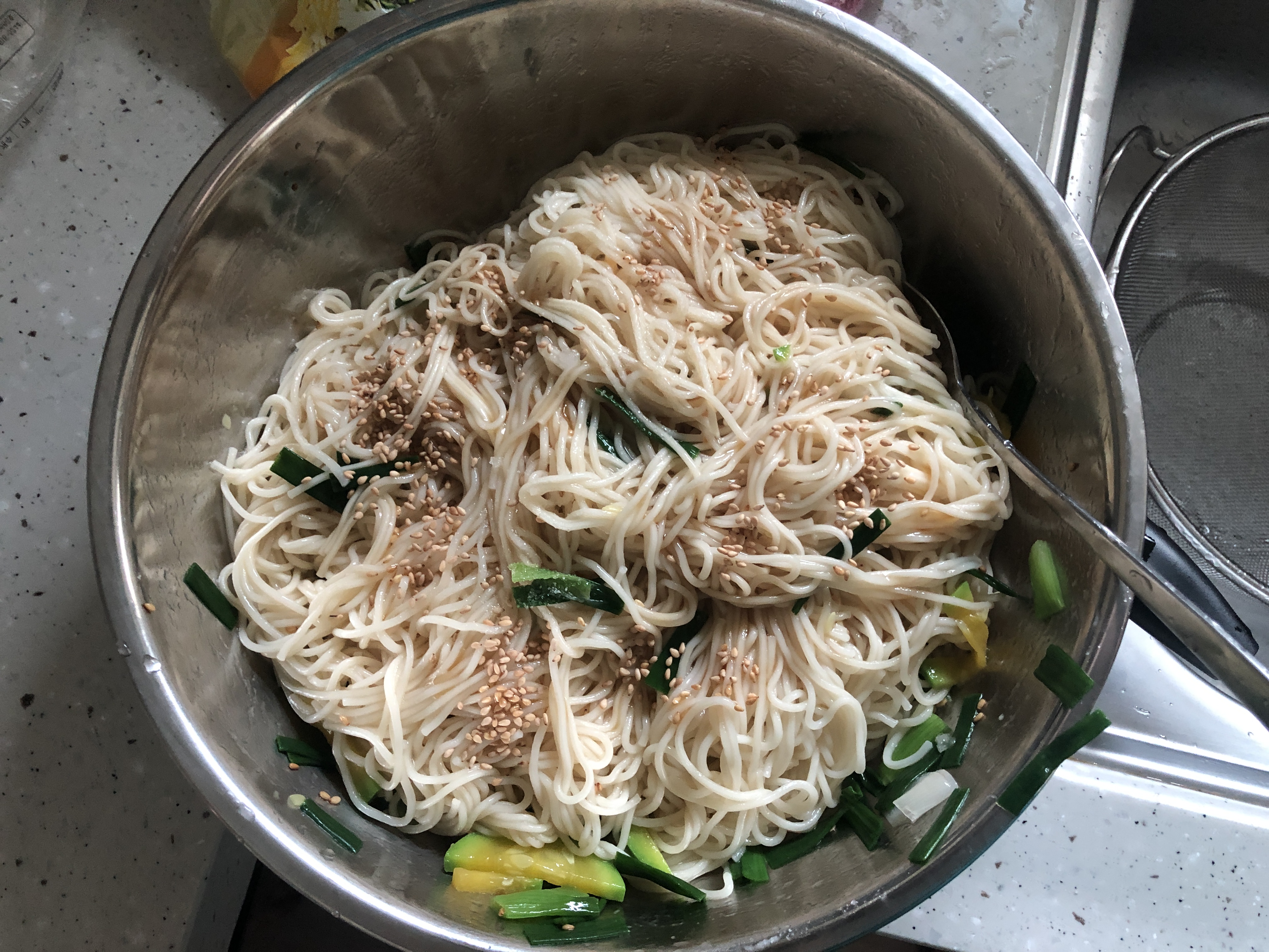 아까 만들었던 양념에 요렇게 비벼주시면 됩니다..! 비주얼이.. 좀 있어보이나요??ㅎㅎ 면을 너무 많이 삶아서 아까 만들었던 양념으로는 한참..! 모자라더라구요~! 그래서 더 추가했어요 ㅎㅎ 참고해주시길 바래요..! 그리고 다 만든다음에 깨도 더 추가해주고~ 먹어보니.. 음..? 이런 맛도 있구나..! 하는 맛이었어요. 제가 실력이 없어서 그런거 같은데 제대로 하실줄 아는분이 만들어서 드시면.. 꽤 맛있겠더라구요..!! 나중에 유튜브 보시면서 만들어 보시는 것도 괜찮을 것 같아요~!