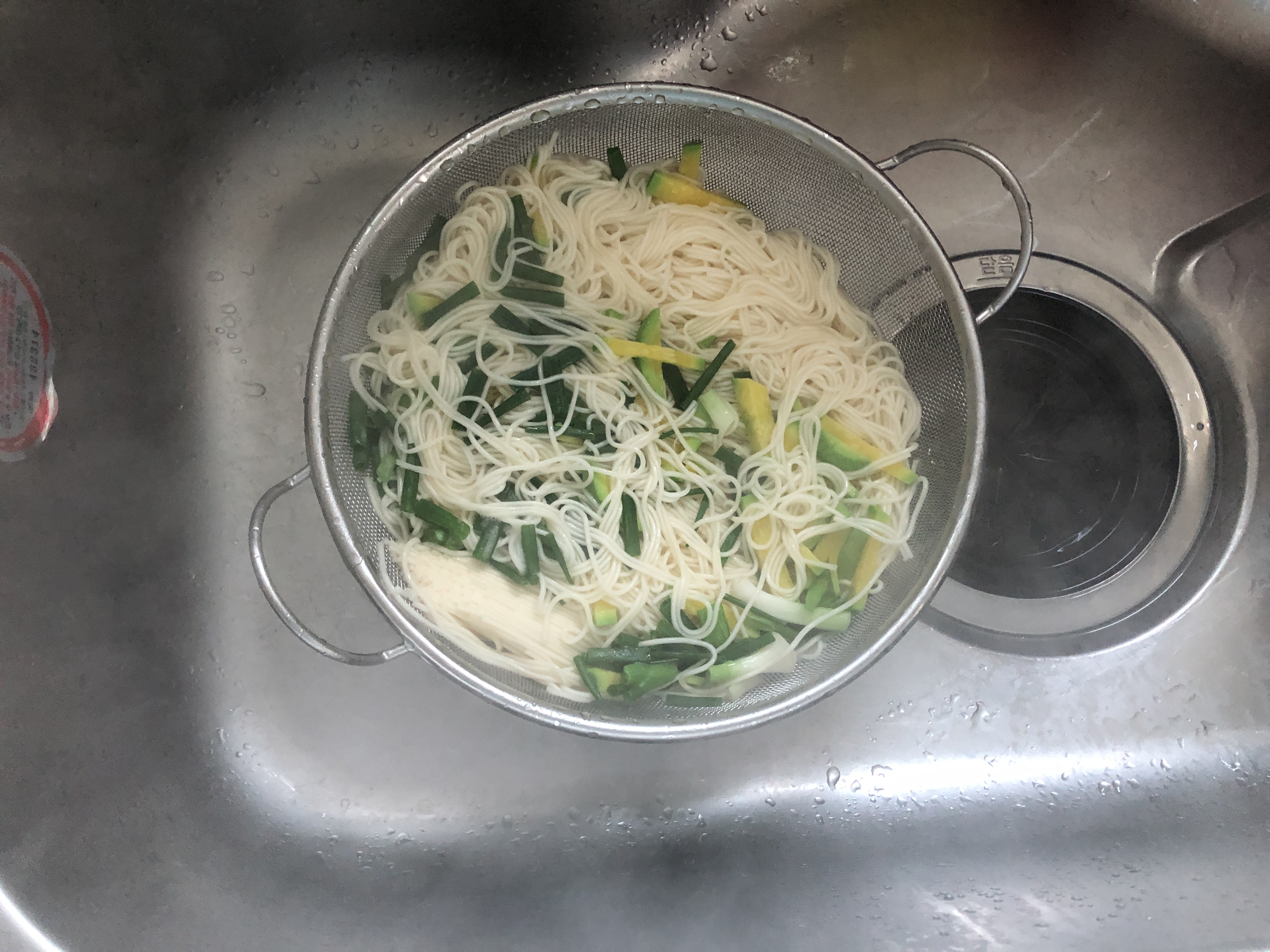 요렇게 다 익힌 다음에 차가운물에 헹궈주시고..! 오.. 이렇게 보니 그럴듯..하네요~! 제가 참 요리도 못하는데 와이프가 너무 바쁘니 이렇게라도.. 해먹게되네요 ㅎㅎ 인터넷 영상보고 여러가지 도전을 해봐야겠다는 생각도 들긴하네요~! 요렇게 다 헹궈주시고..!!
