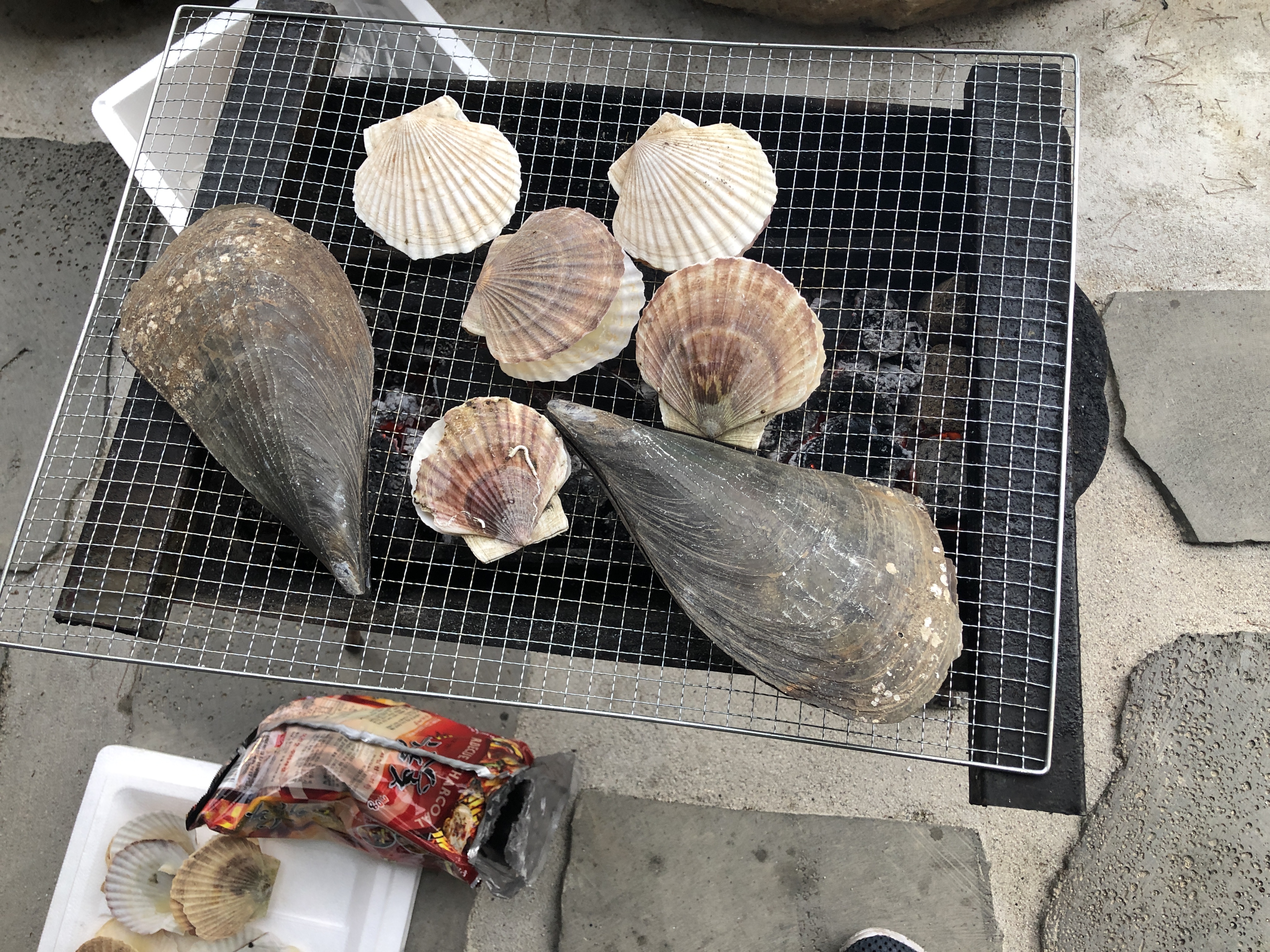 포인트를 둘러보고~! 저녁을 먹기 시작합니다..ㅎㅎ 죽도시장에서 가리비와 키조개를 사왔어요. 키조개는 마리당 3천원 가리비는 kg에 9마리 정도 들었는데 13000원. 3키로 주문해서 왔어요. 숯불은 10분전에 말씀을 드리면 불을 피워주십니다. 이렇게 저녁을 먹고~! 케익도 불고.. 밤낚시를 하러갔는데.. 앞에 누군지 모르겠지만.. 해녀는 아닌데.. 잠수해서 저희 포인트를 지나가시는분이 있더라구요.. 그 뒤로 입질이.. 하나도 없습니다..ㅎㅎㅎ 아버지는 원투하시고 저는 루어하고 있었는데.. 쩝.. 그래서 그냥 철수하고.. 새벽에 나가자고..ㅠㅠㅠ