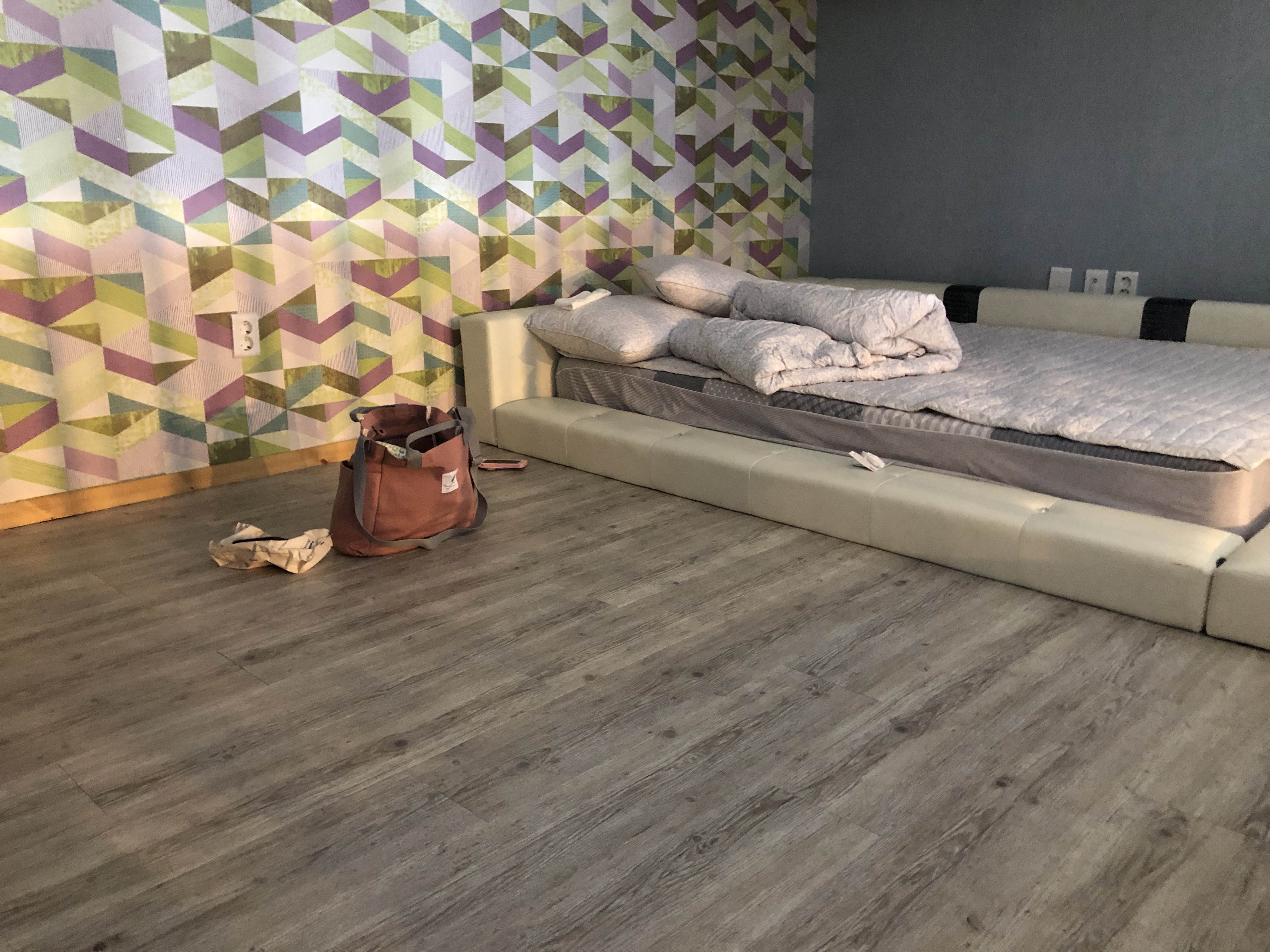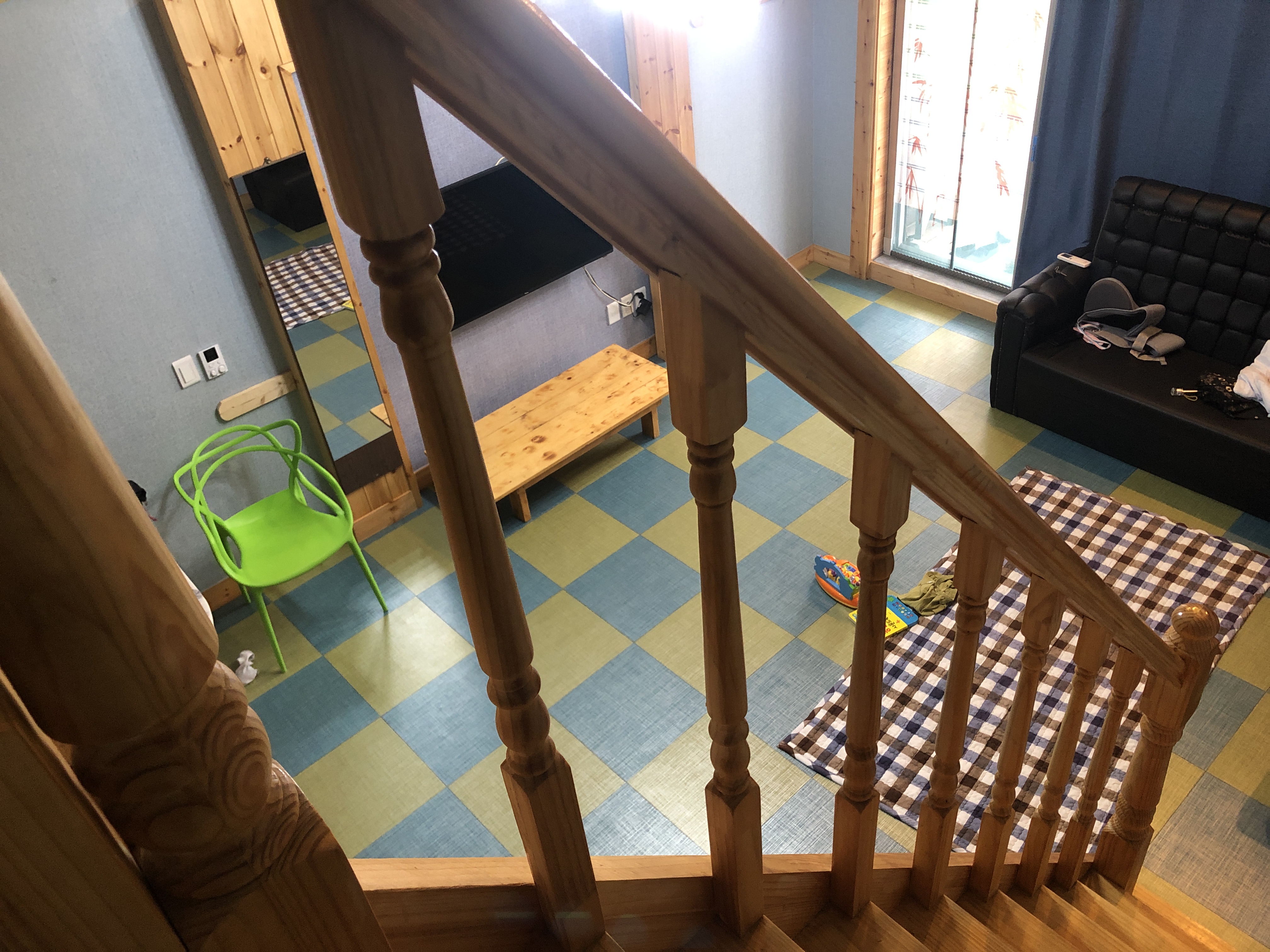 딱 처음모습을 찍지는 못해서 양해좀 드릴게요~! 저희가 짐풀고 사진 찍었어요.. ㅠㅠ 전체적인 모습입니다. 저희는 a101호 사용했구요~! 방은 따로 없고 이렇게 복층입니다. 따로 방이 없어서 조금 불편하긴했는데. 그래도 괜찮았어요. 계단의 높이는 살짝 높은편이구요~! 침구에 따로 냄새도 안나네요.