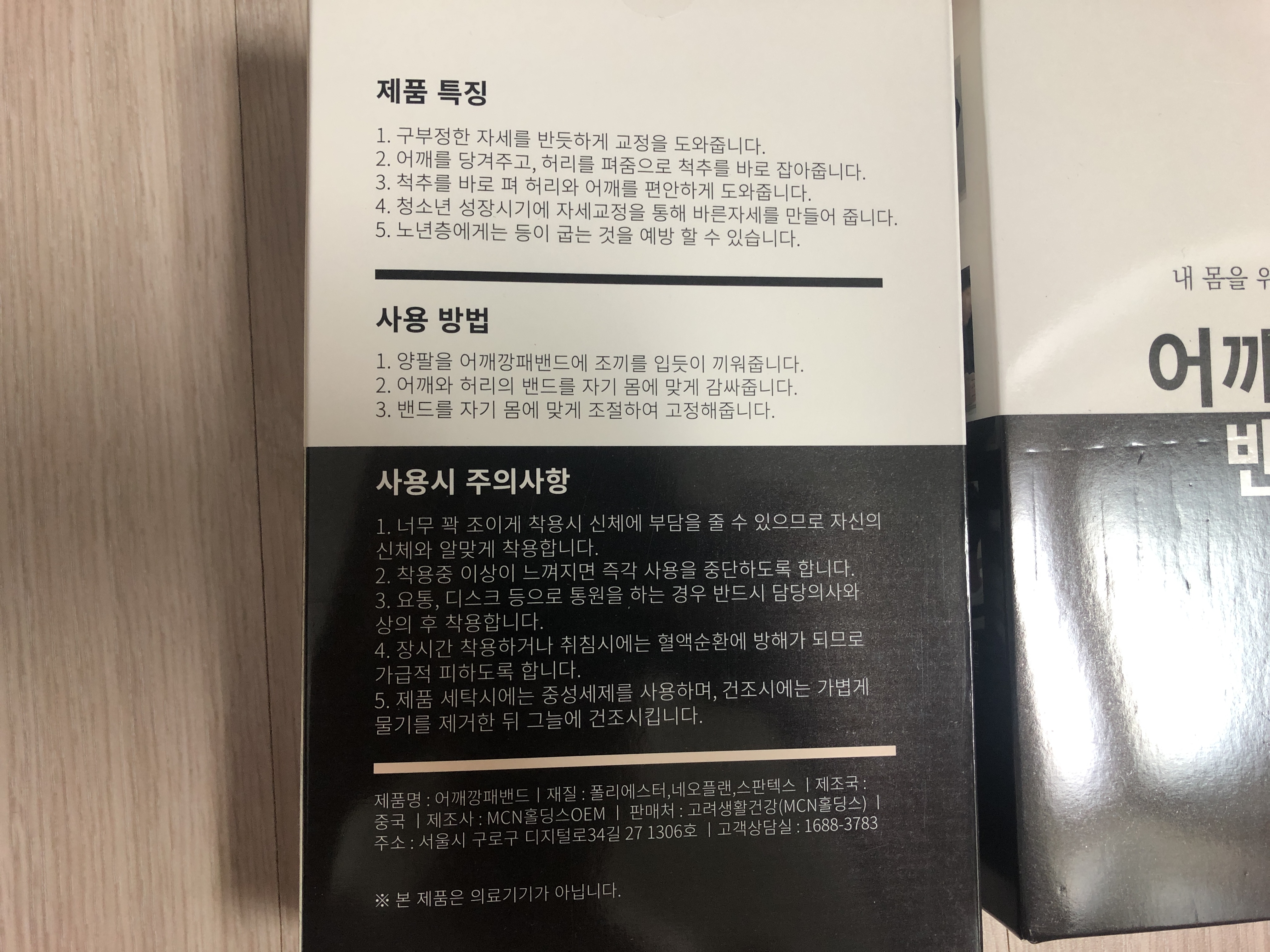 일단 구입은 고려생활건강이라는 곳에서 했습니다. 지금도 행사를 하는데 1+1입니다. 가격은 네이버에서 24900원. 배송은 빠른편이었어요. 구입하고 이틀뒤에? 도착했습니다. 와이프도 육아를 하면서 목과 어께에 통증을 느끼더라구요~! 이걸로 서로 자세 교정이 되었으면 하는 바램..!