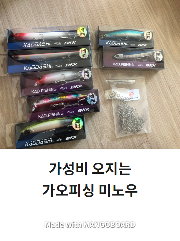 안녕하세요 안녕삐에로입니다. 제가 취미생활을 낚시로 가지고 있는데요~! 이제 시작한지 얼마 안되었어요. 실제로 출조를 한 것도 몇번안되구요~! 제가 잡고싶은 것은 농어..!! 농어를 잡을려고 여러가지 장비를 많이 봤는데 일단 릴은 아부가르시아에 2500번짜리 카디날 낚시대는 블루앤피쉬의 레베즈 첼린져를 가지고 있어요..! 합사는 썬더합사 1.2호 쓰고있구요~! 어느정도 장비를 구입을 하였고~! 물론 부족하거나.. 이름 있는건 사지못했어요. 금전적인 문제가 커서..ㅎㅎ 이제 농어를 잡기 위해 미노우를 살려고 큰 낚시마트를 갔는데.. 가격이..? 엄청 비싸더라구요~! 일제제품은 하나당 가격이 2만원..이 넘어가고 싼거도 만원이 그냥 넘고 ㅠㅠ 그래서 인터넷에 알아보니 가오피싱이라고 미노우를 판매하는 곳이 있는데 가성비가 오진다고 하더라구요..! 그래서 가오피싱이라고 한다네요 ㅎㅎ 오진다는건 쉽게 설명하면 짱?? 이라는 느낌으로 보시면 될 것 같아요~! 제가 구매한 가오피싱 하드베이트 미노우를 보여드릴게요.