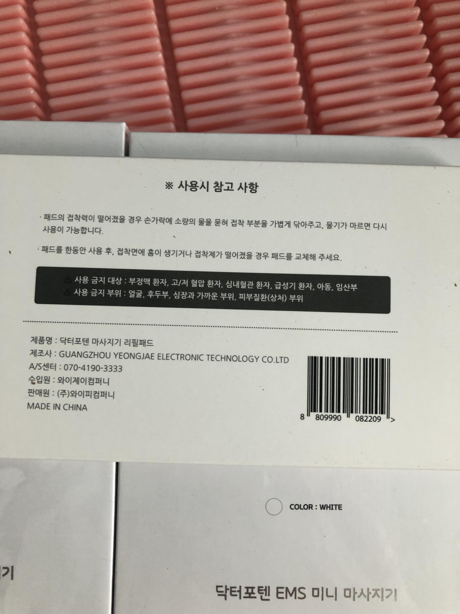 제가 본체2개와 리필패드를 구입을 했습니다. 요즘 특가가 워낙 많아서 정확하게 금액을 말씀드리기가 좀 그런데~ 아마 인터넷 찾아보시면 7만원대로 구입을 하실 수 있을거에요. 패드 금지 대상은 부정맥 환자, 고 저 혈압환자, 심내혈간 환자 급성기 환자, 아동, 임산부 입니다. 금지 부위는 얼굴, 후두부, 심장과 가까운 부위, 피부질환 부위 입니다. 참고사항은 패드의 접착력이 떨어졌을경우 소량의 물을 묻혀서 사용하면 좀 더 접착력이 생긴다고 합니다. 패드를 사용하다 접촉면에 흠집이 생기거나 접착력이 떨어지면 리필패드로 교체하면 된다고 하네요~!