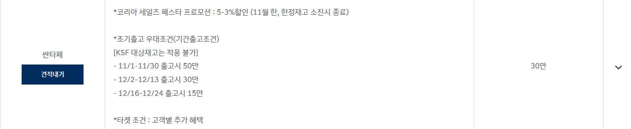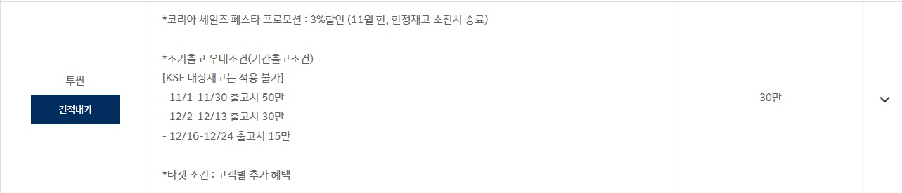 코리아 세일즈 페스타 프로모션 : 5~3%할인 ( 11월 한, 한정재고 소진시 종료)