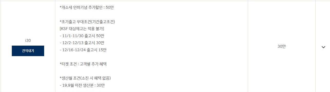 코리아 세일 페스타 프로모션 : 7~3%할인+ 2.5%저금리 (11월한, 한정재고 소진시 종료)