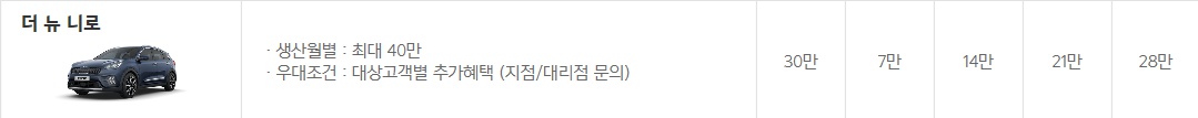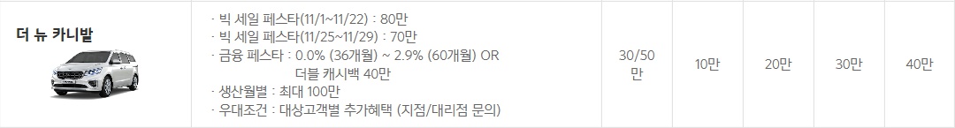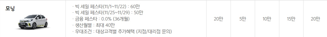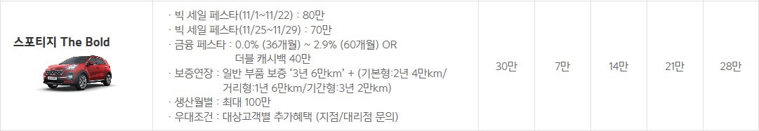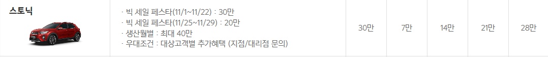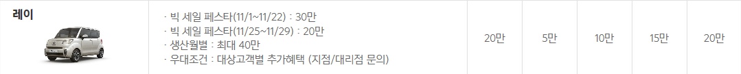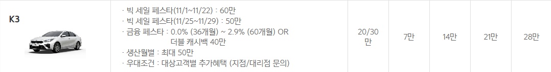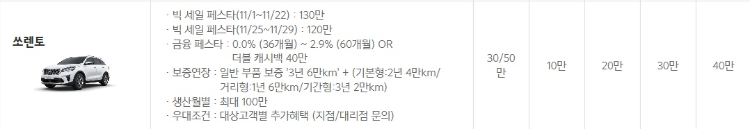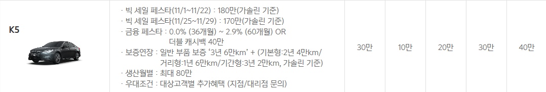 - 빅 세일 페스타(11/1~11/22) : 180만(가솔린 기준)