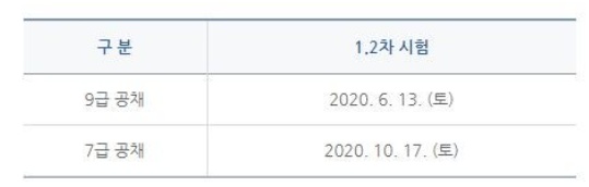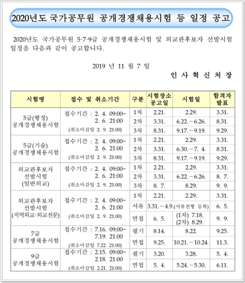 2020년 공무원 시험일정