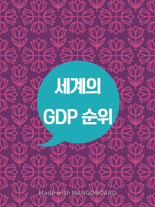 일단 순위를 보는거에 앞서 GDP가 무엇인지 알아야겠죠? GDP는 국내 총생산이라고 부르는데요~! 나라의 영역내에서 가계, 기업, 정부 등 모든 경제주체가 일정기간동안 돈이나 부가가치를 시장가격으로 평가하고 합산한 것입니다. 여기에 비거주자가 제공한 노동 자본 등 생산요소에 의하여 창출된 것도 포함되어 있다고합니다..! 한국의 GDP 통계는 UN이 각국에 권고한 국제기준인 궁민계정체계에 따라 한국은행에 의해 작성되어 분기별로 공표되고 있다고 합니다. 한마디로 말씀드리면 우리나라에서 일어난 모든 생산활동, 그걸로 인한 돈벌이, 가치 등이 모두 포함되어 GDP라고 부른다고 하면 되겠습니다..!