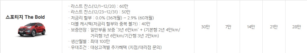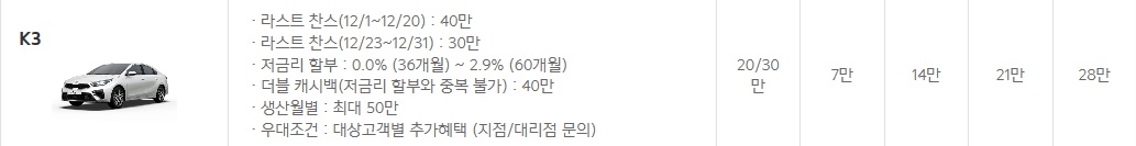 -라스트 찬스(12/1~12/20) : 160만 (가솔린 기준)