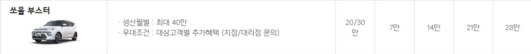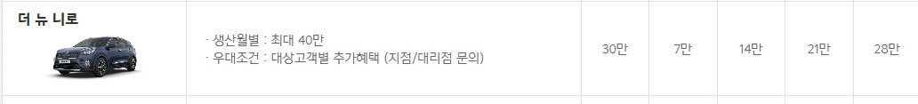 -보증연장 : 일반부품 보증 3년 6만KM + (기본형 2년 4만KM/거리형 1년  6만KM/기간형 3년 2만KM)