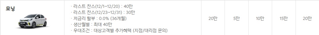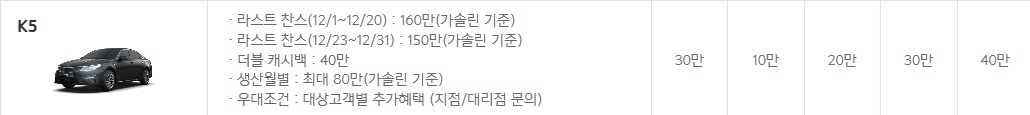 -라스트 찬스(12/1~12/20) : 160만 (가솔린 기준)