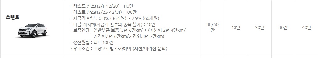-라스트 찬스(12/23~12/31) : 150만 (가솔린 기준)