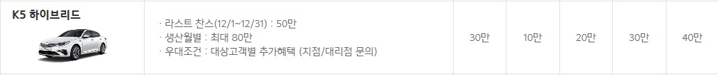 K7 프리미어 하이브리드 12월 판매조건 및 프로모션