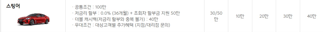 -더블 캐시백(저금리 할부와 중복 불가) : 40만