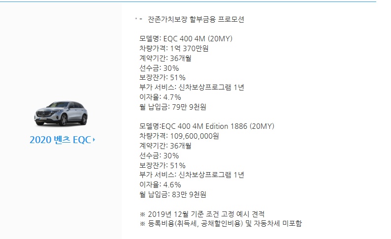 모델명 EQC 400 4M EDITION 1886 (20MY)