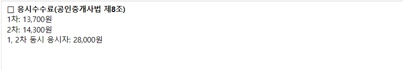 ㅁ응시 수수료는 1차에 13,700원, 2차에 14,300원 총 28000원입니다. 참고하시길 바랍니다~~!