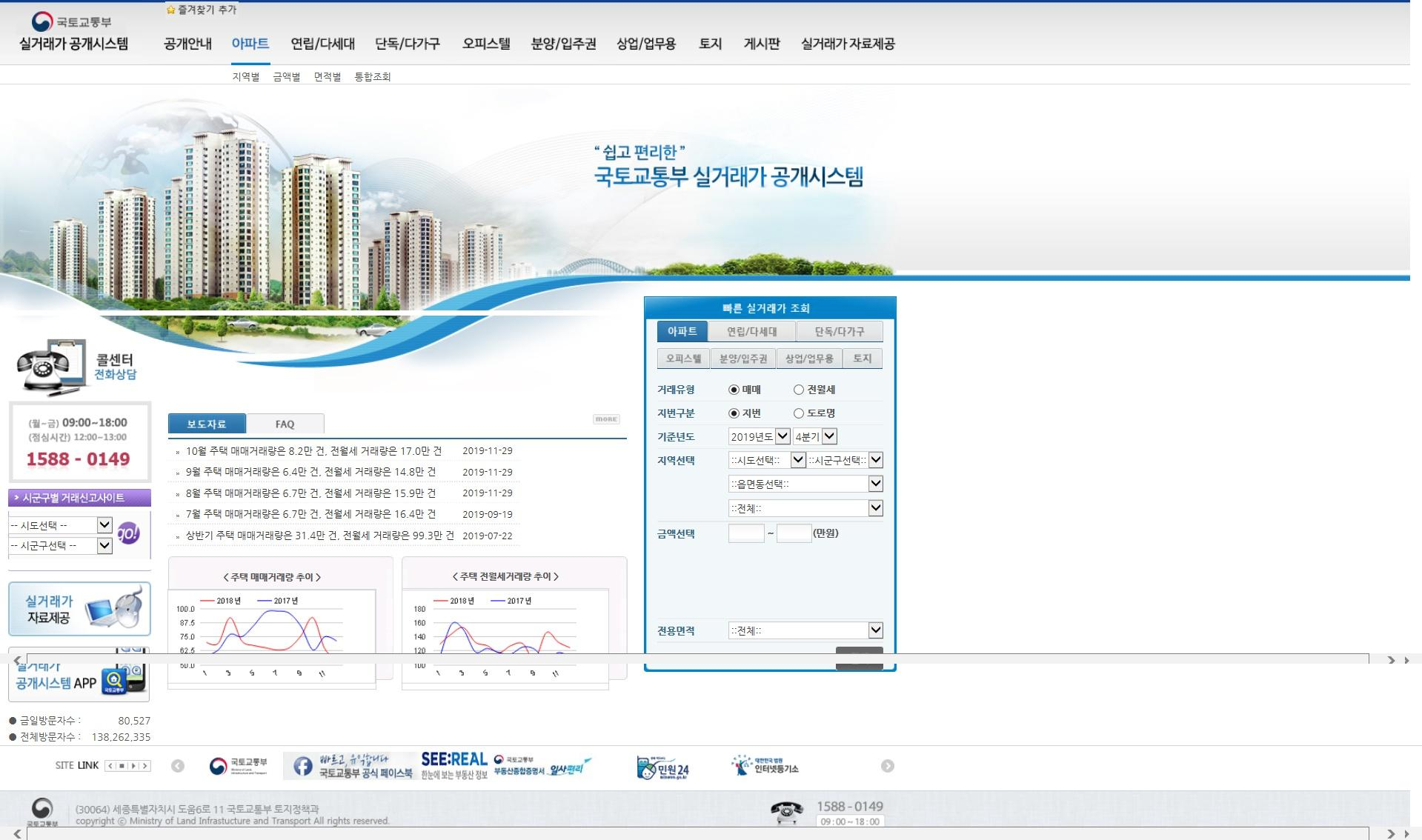 모두 안다면 알고 모른다면 모르는데요~! 국토부 실거래가 공개시스템이라는 홈페이지가 있습니다. 여기에 들어셔서 검색하시면 언제 몇일날 어떤 아파트가 얼마에 거래가 되었는지 전부 조회가 가능합니다. 그래서 집값이 실제로 얼마에 거래가 되었는지 부동산에서 판매하는 금액이랑 비교할 수 있습니다..!