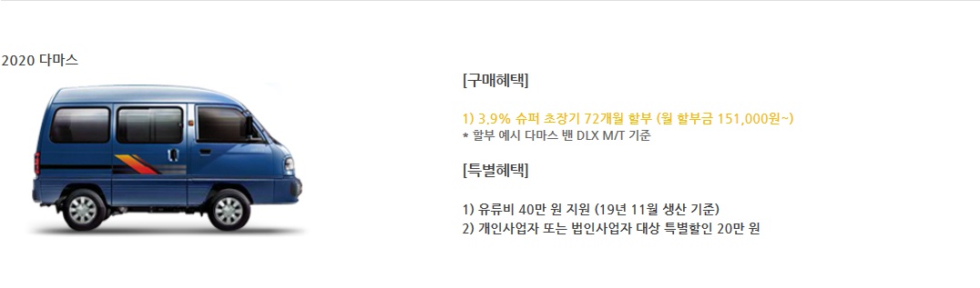 - 다마스 / 라보 : 20만원 할인