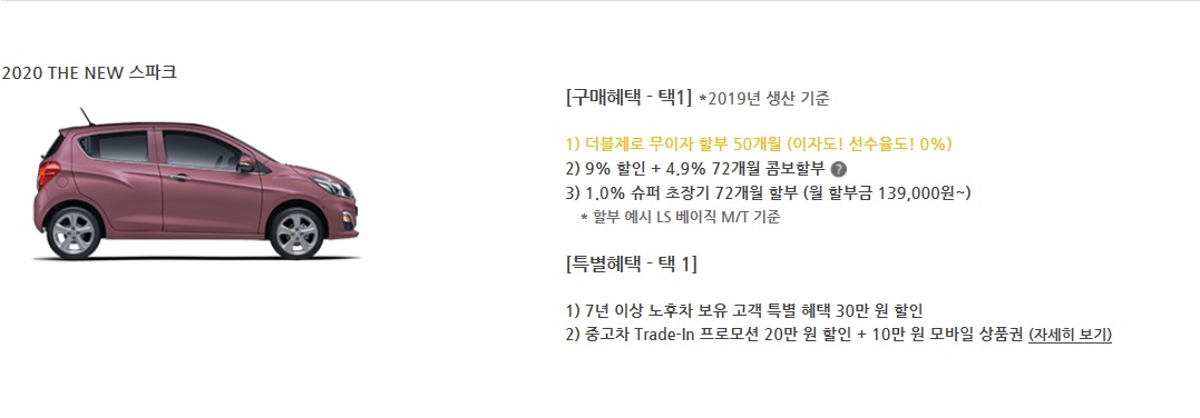 -스파크 : 20만원 할인 +10만원 모바일 상품권