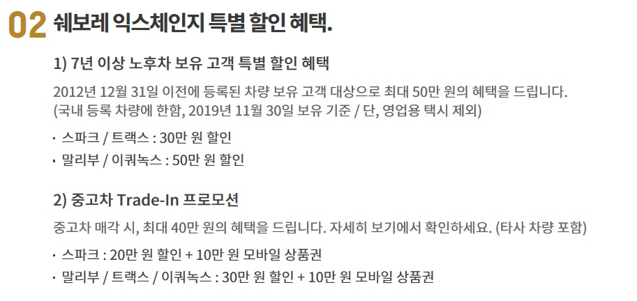 -말리부/트랙스/이쿼녹스 : 30만원 할인 + 10만원 모바일 상품권