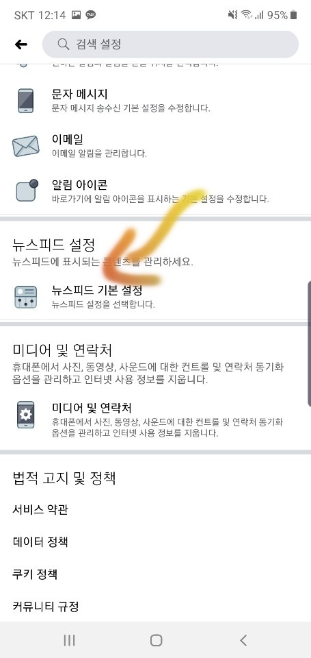 설정화면에 들어오시면 뉴스피드 기본설정이라는 것이 있는데요~!