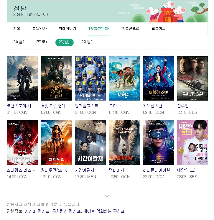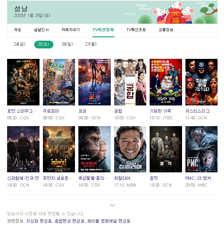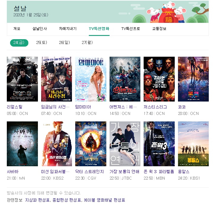 이걸로 이제 명절이 끝났네요~! 참 명절에는 톨게이트 비용도 무료인거 아시죠?? 요일과 시간이 있으니까 꼭 참고하셔서 톨게이트 비용을 절약??하시길 ㅎㅎ 이걸로 설날 특선영화 편성표를 마무리 짓도록 하겠습니다.