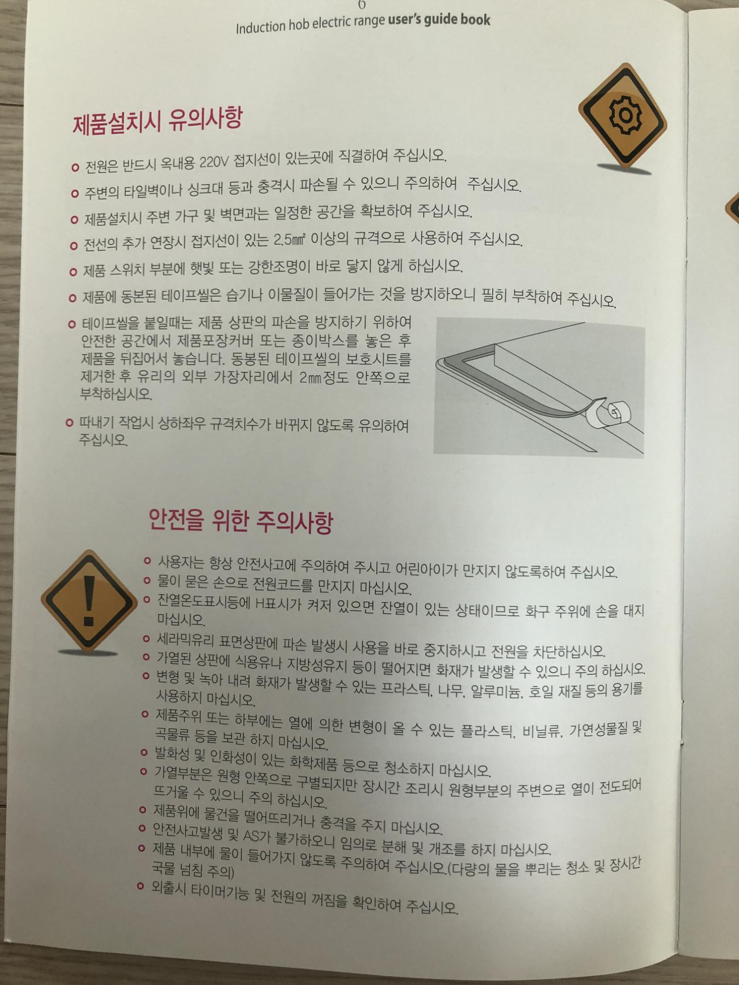 여러가지 유의사항이 나옵니다. 제품설치시 유의사항을 보시고 설치해주실 업체에서 제대로 이행을 하는지 확인해주시면 좋을 것 같아요. 다른 유의 사항은 다 저희가 알고 있을만한 그런 내용인데 공사하실때 꼭 보셔야 되는 것..! 접지선을 잡아주는 것 입니다. 요거만 주의하시면 설치에대한 유의사항은 크게 볼건 없을 것 같아요. 나머지 안전에 대한것과 올바른 사용에 대한 것도 꼭 한번 읽어보시길 바랍니다..! 그리고 인덕션 전용용기를 사용하셔야되요..! 자석이 붙는 그런 용기를 사용하시면 됩니다.