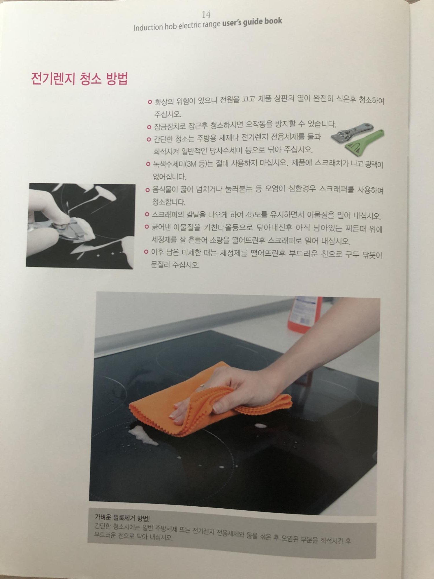 청소방법은 그냥 젖은 수건이나 물티슈로 닦으면 된다고 합니다. 기사님께서 절대 표면이 거친 수세미나 3M 수세미로는 하지말라고 하시네요..! 그리고 굳은게 있으면 인덕션을 좀 데워서 긁으면 된다고 하시던데 옆에 칼이 2개가 있는데 하나는 주신거고 하나는 인덕션 상자안에 들어 있던 것 입니다. 인덕션 전용 청소하는게 있나봐요 그걸 좀 뿌려서 닦으면 잘 지워진다고 하더라구요. 근데 솔직히 더러워질이 없는 것 같습니다.