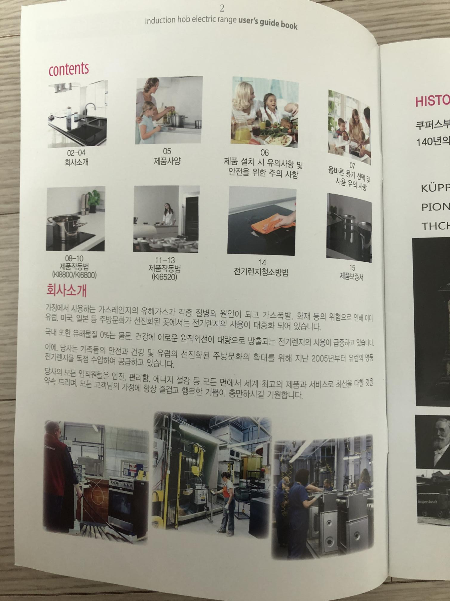목차와 회사 소개가 나옵니다. 한번 읽어보시면 될 것같아요. 쿠퍼스 부쉬는 1875년 설립되어 140년의 전통을 가진 독이 주방가전의 창시가입니다..! 라고하네요. 사용해보니 역시 명품인덕션이더라구요~~! 만족만족..!