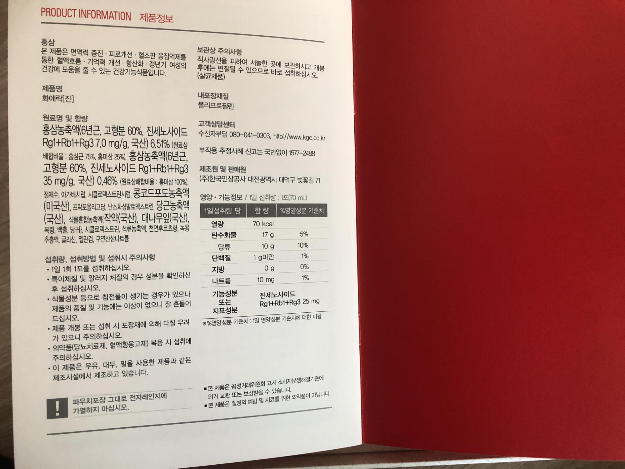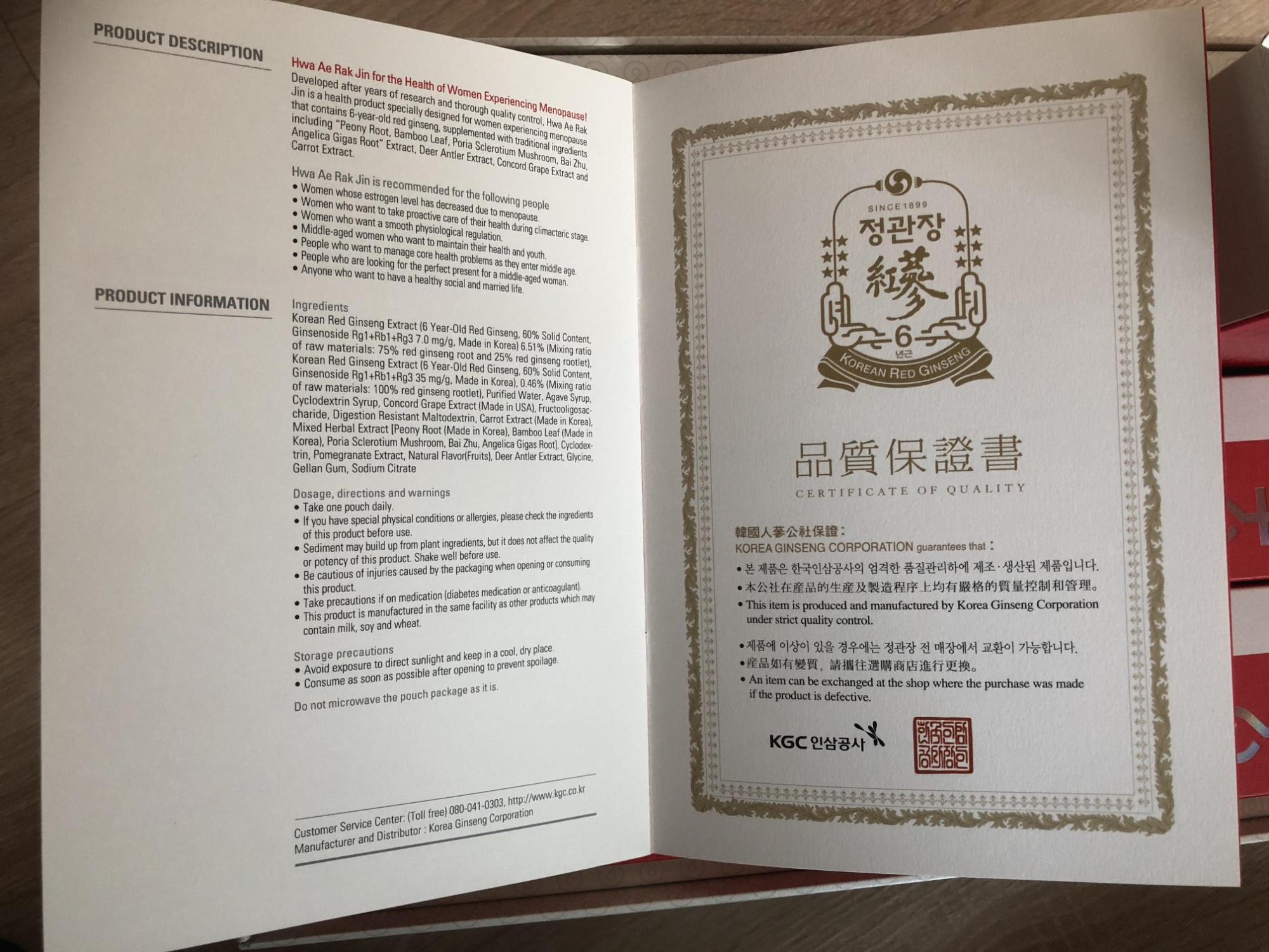 상자를 뜯어보니 이렇게 생겼습니다. 건강기능식품이고, 홍삼성분이 함유디어 있다고 합니다. 갱년기 여성의 건강에 도움을 줄 수 있다고 하는데요. 하루에 한포씩 한달치 입니다. 한달치고.. 가격이 엄청나죠?? 근데 효과만 있다면 상관없을텐데 없으면..좀 그렇네요. 물론 사람마다 틀리겠죠??