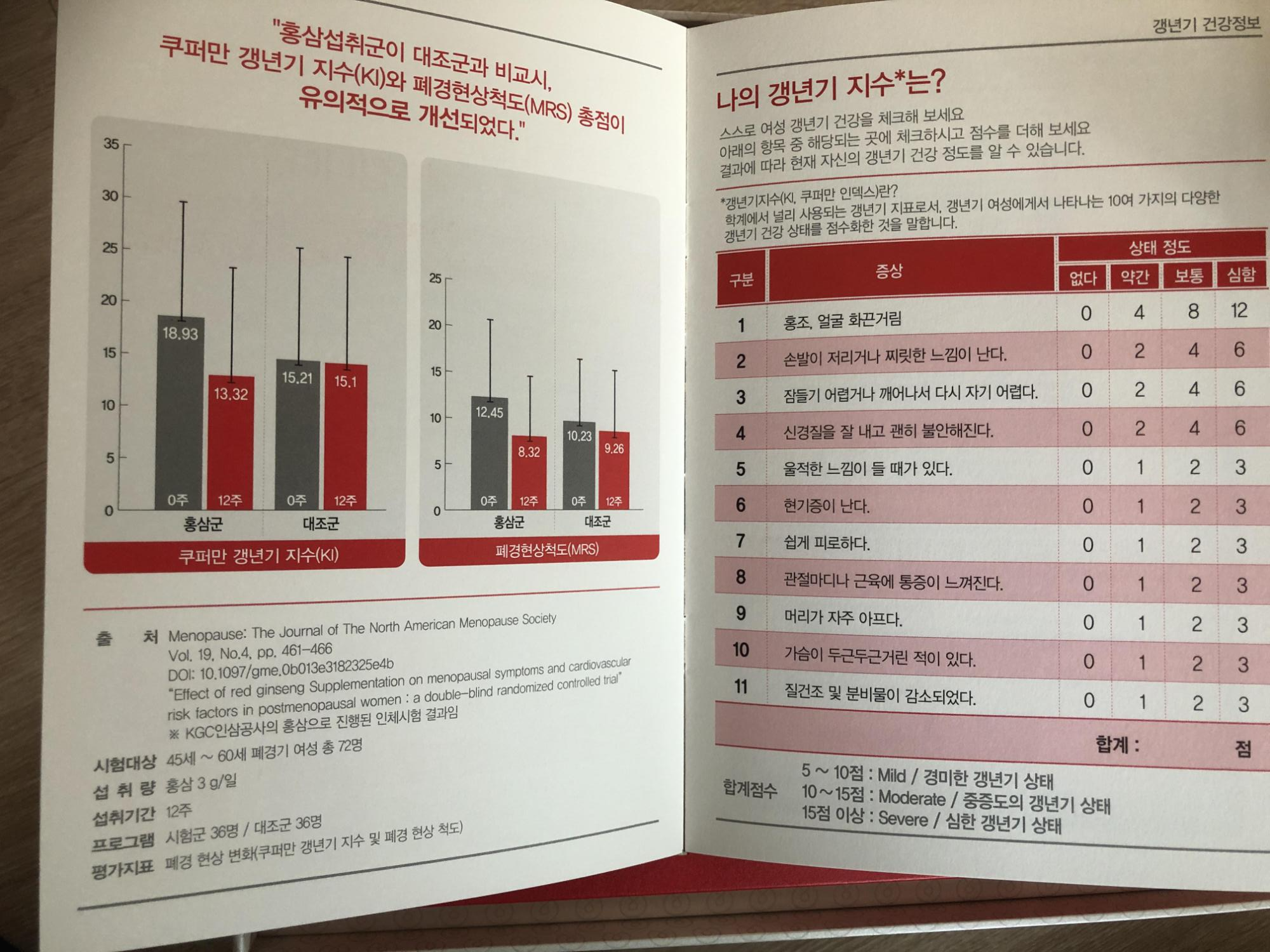 안녕하세요 안녕삐에로 입니다. 나이 드신 여성분들이 갱년기를 많이 겪고 계신데 이게 갱년지 인지 모르고, 아님 갱년기라 할지라도 그냥 방치하고 넘어가시는분들이 많으십니다. 갱년기에는 대표적인 증상이 심리적 변화, 심한 기분 변화, 우울증, 기억력 장애도 있고 신체적으로는 얼굴과 목 주변에 붉어지고 열이난다, 자는데 땀을 많이 흘린다, 수면장애, 자궁출혈등이 있다고 합니다. 우울증이나 기분변화는 굉장히 안좋은데요.. 원인으로는 여성호르몬이 적어지면서 호르몬 불균형에서 나타난다고 합니다. 그래서 요즘 사람들이 영양제를 구입해서 섭취하시는데요~! 정관장에서 여성 갱년기에 드시는 영양제가 있어서 구입을 해봤습니다.