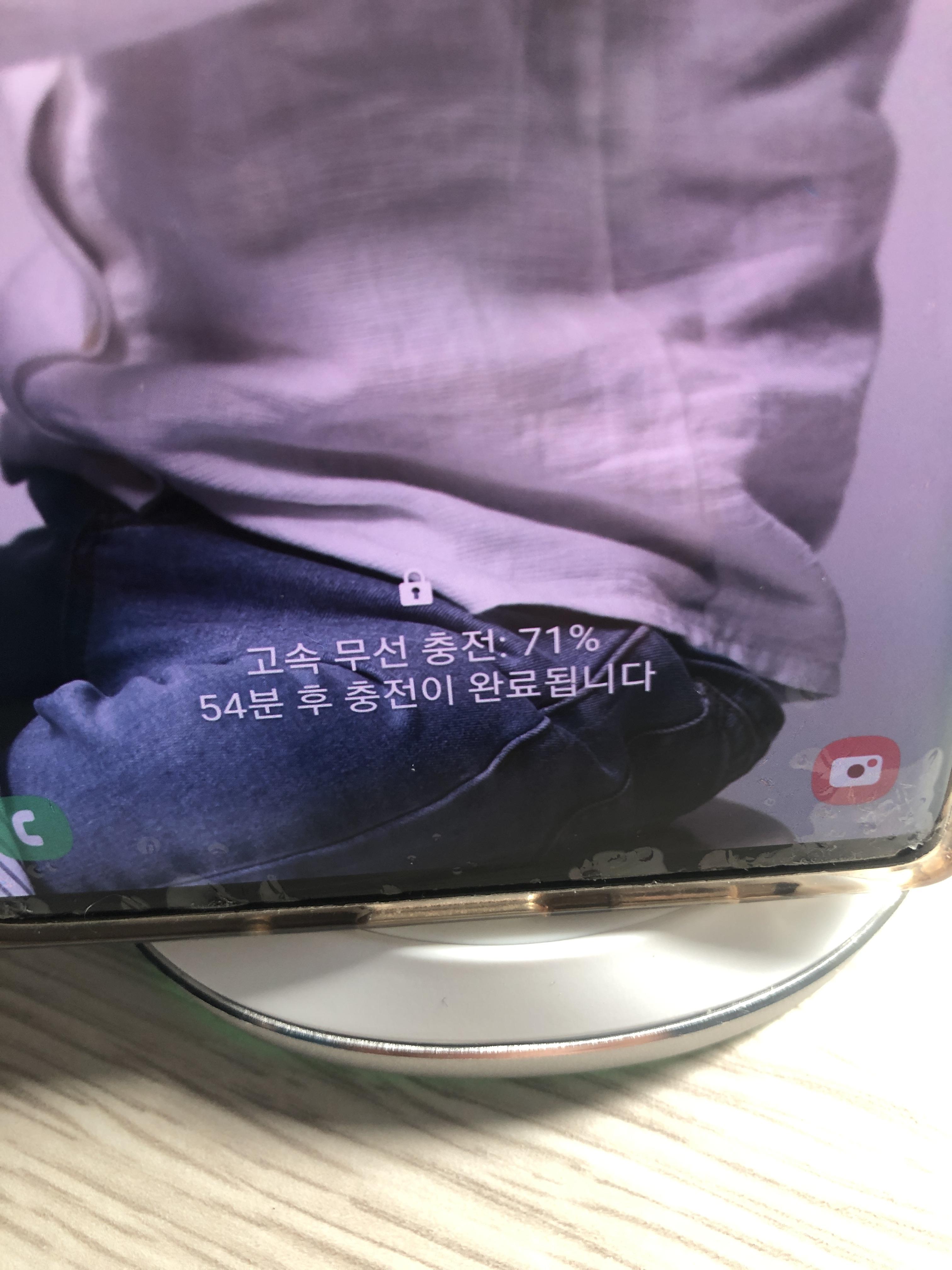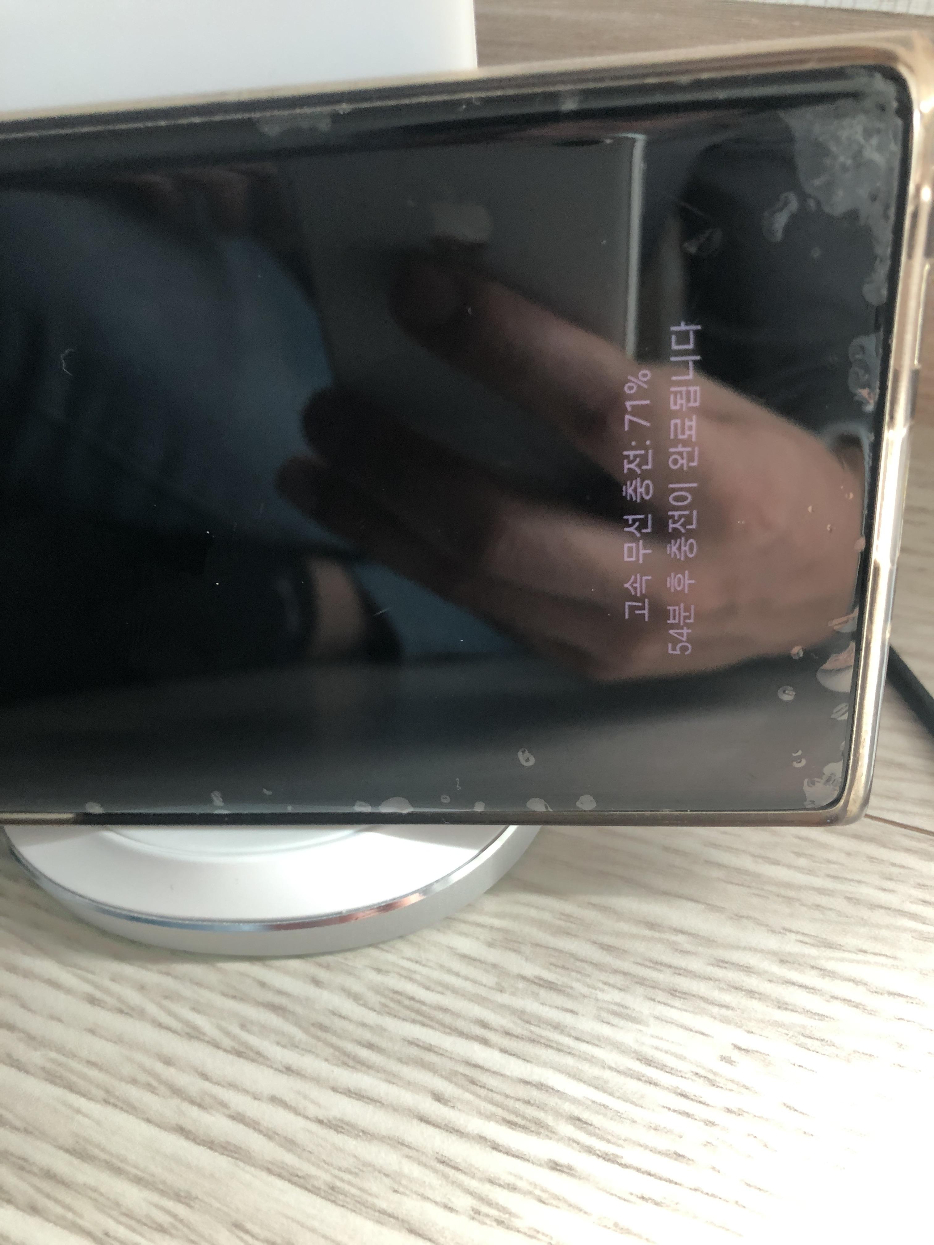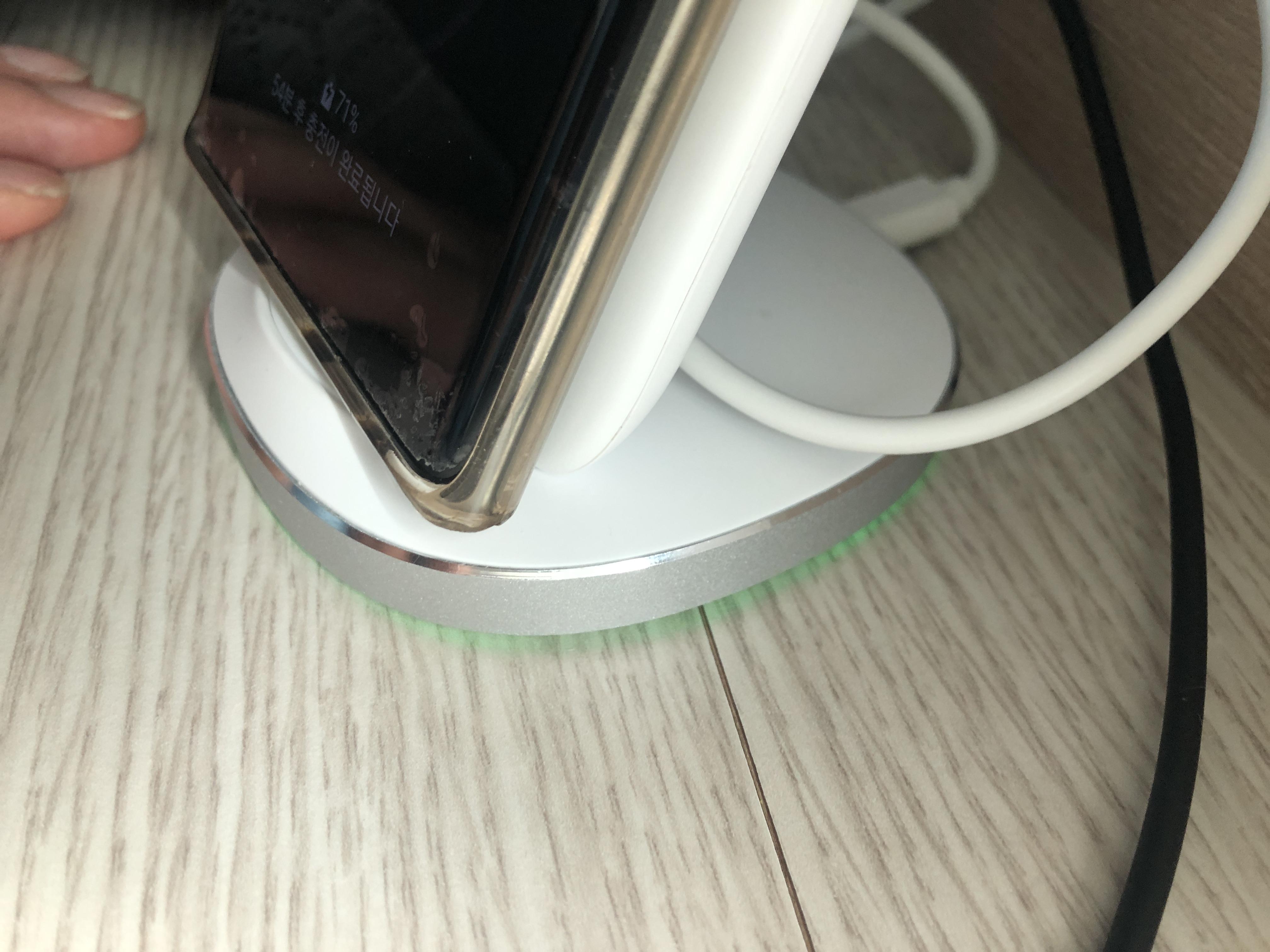 충전을 시키면 밑에 초록색? 이 들어와요. 살짝 켜졌다 꺼졌다해요. 만약에 충전이 안되는 경우에는 좀 많이 빠르게 깜밖깜밖합니다..! 일단은 만족..! 무선충전기가 안좋은건 충전을 시켜놓고 만지기는 어렵다는게 있네요. 그러나 거치가 되니까 동영상 켜놓고 거치시켜도 봐도되요. 사무직들은 유용하게 쓰실 것 같아요. 책상옆에 두시고 업무보기전에 거치시켜놓고 업무보시고~! 이튼저튼 고속 충전도 잘되고 만족스런 무선충전기였습니다.