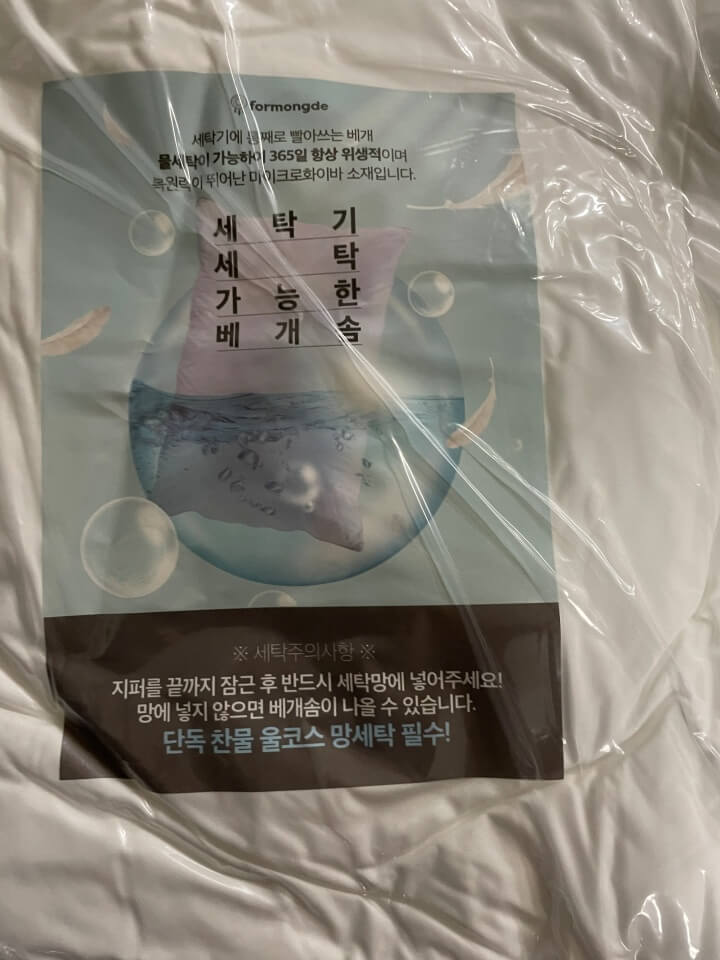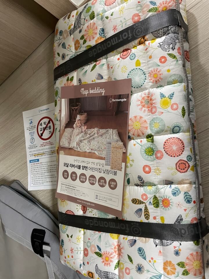 어린이집 낮잠이불 포몽드 낮잠이불의 세탁방법, 주의사항 등등이 나와있어요. 일단 건조기는 무조건 사용금지..! 그리고 장시간 물에 담아두면 안된다고 합니다. 세탁 후 바로 자연건조 하라고 나와있네요. 그리고 뜨거운물도 안된다고 하네요.. 그리고 베개솜도 같이 오는데 지퍼를 잠근 후 세탁망에 넣어도 단독 울코스로 세탁해달라고 합니다! 여러가지 복잡하네요.. 알카리성 세재를 사용하시면 안되고.. 꼭 중성세재를 사용해야 된다고 합니다. 더 적을려니 복잡해서.. 설명서를 꼭 읽어주시길 바래요~! 근데 저희는 원래 중성세재 쓰고 건조기 안쓰고..해서 크게 뭐 다른건 없었어요. 큰 세탁기에 중성세재 넣고 그냥 돌리고 바로 자연건조..해서 끝이었거든요.