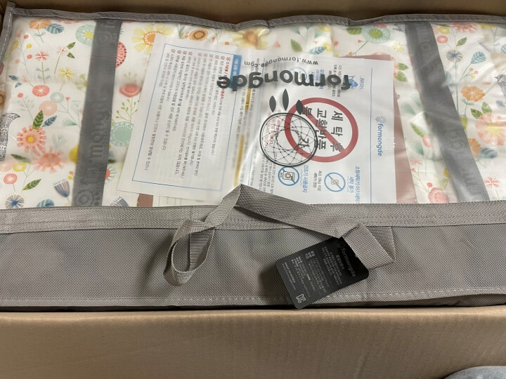 가격도 10만원 이하로 그렇게 부담있는 가격은 아니더라구요. 포몽드 낮잠이불의 택배상자 입니다~! 그렇게 큰 상자는 아니지만 길쭉~한 상자가 왔어요. 배송은 이틀정도 걸렸던 것 같아요. 배송도 이정도면 괜찮았다고 생각합니다~