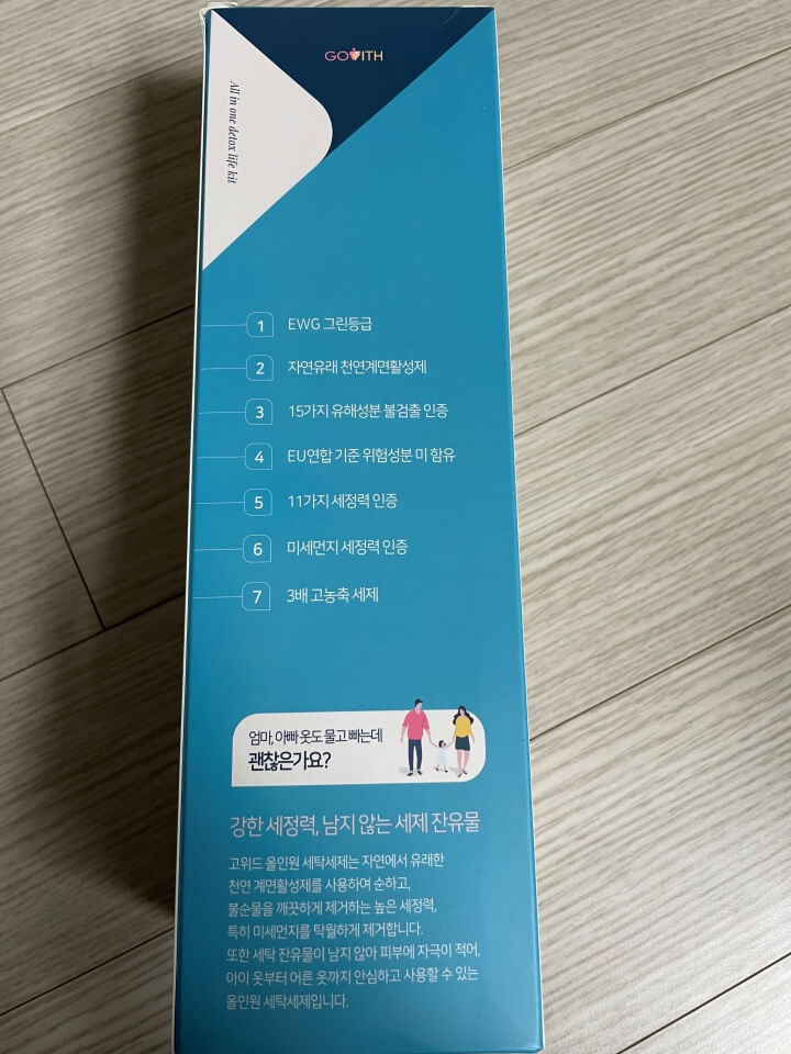 고위드에서 주방세제와 세탁세제 set를 주문했습니다. 주방세제는 아기들 젖병을 씻을 때 사용해도 된다고 합니다. 그래서 저희는 고위드 주방세제를 젖병세제로 사용하고 있습니다. 저희가 쓰는 주방세제 따로 아기전용 젖병세제 따로 쓰기는 너무 번거롭더라구요. 그래서 한번에 쓰고 있습니다. 보시다시피 고위드 젖병세제 및 세탁세제 세트인데 포장이 엄청 꼼꼼하게 옵니다.