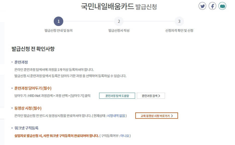 HRD-NET 홈페이지에서 하는 국민내일배움카드 신청 메뉴얼