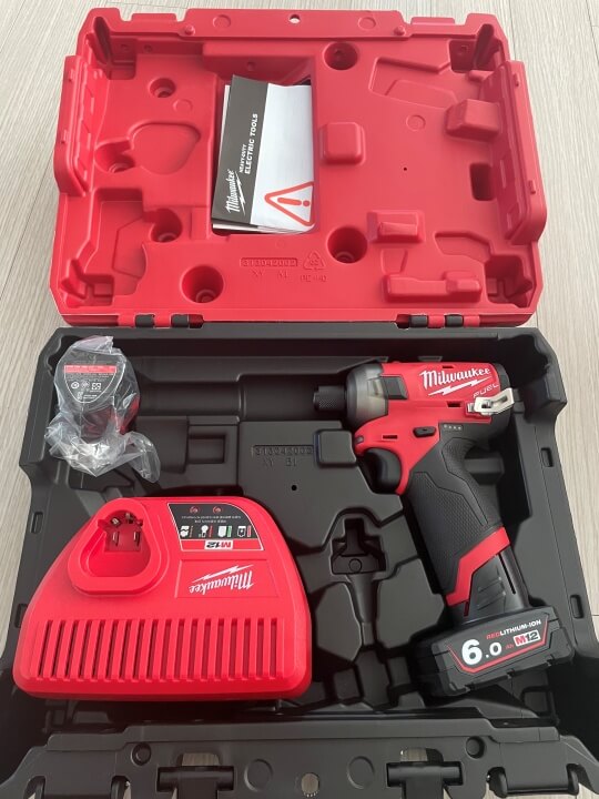 드릴을보면서 정말 예쁘다는 생각이 들었습니다. 기대감을 안고 상자를 뜯으니~! 짜안..! 빨간색 박스가 하나 놓여져 있습니다. 모델은 m12-fqid-632c kr 한국발 밀워키 오일펄스 제품입니다. 배터리가 6ah,3ah 두개가 들었고 본체도 하나 충전기도 하나 들었습니다. 한국발과 직구제품의 차이가 있어요. 잘 알아보시고 선택하시길 바랍니다. 앞에 척에 꼽히는 비트의 종류가 mz냐 nz냐로 나뉘는데 거기에 대해 잘 알아보셔야되요!! mz척을 가진 제품은 nz비트를 사용할 수 없지만 nz제품은 mz,nz 비트를 다 사용할 수 있습니다.