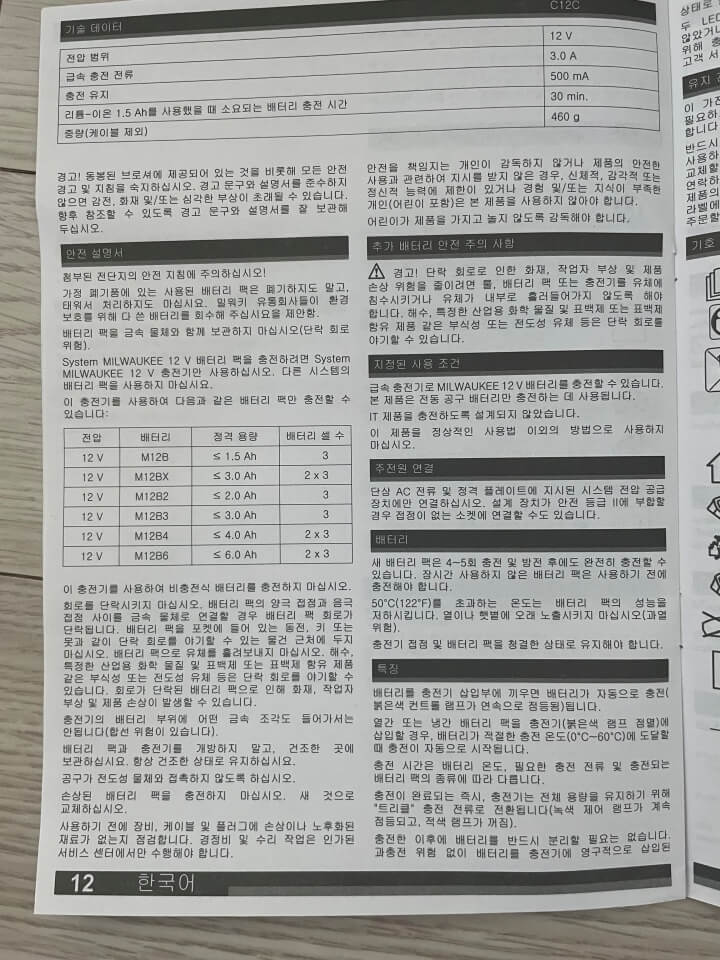 밀워키 m12 충전기 입니다. 정격전압은 220v 출력은 12v에 3a입니다. m18은 따로 충전기가 필요하네요. 공용을 주면 참 좋겠지만.. 욕심인 것 같습니다. 일단 언박싱하고 살짝 돌려본 결과는 만족입니다..! 아직 작업을 안해봐서 어떻게라고 말씀을 제대로 드리지는 못하겠지만 만듬새나 그런거는 좋네요. 생각보다 많이 무거운거 빼면요...ㅎ 많은 사람을이 밀워키 m12라인을 그립감이 안좋다고 그러는데 저는 괜찮았어요. 잠깐 써봐서 그런지 모르겠지만 크게 불편함을 못 느꼇어요. 회사에서는 m18라인의 보쉬제품을 사용하고 있는데 그거나 이거나 뭐.. ㅎㅎ 디월트 제품은 안만져봐서 잘 모르겠네요. 이튼저튼 m12-fqid 오일펄스 제품의 언박싱이었습니다..! 한번 작업을 하고 다시 리뷰해보도록 할게요