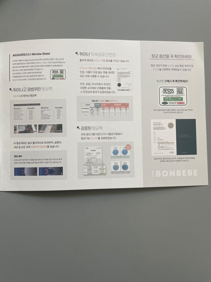 구입하실때 향균을 선택하는게 있어요. 저희는 애기를 키우는 입장이다보니 무조건 향균으로 했어요. 향균을 하면 매트에 저렇게 스티커가 붙어서 온답니다. 저는 보고 바로 제거했어요~! 항균처리는 구매일로부터 유지기한은 3년이네요!! or로 1200회가 있는데 뭐가 1200회인지는 잘 모르겠어요. 요렇게 향균보증서도 온답니다..!