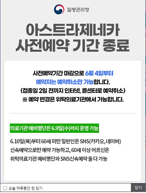 아스트라제네카 사전예약 기간 종료