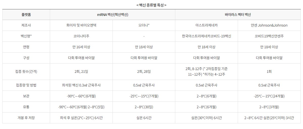 코로나19 백신 종류 및 특징
