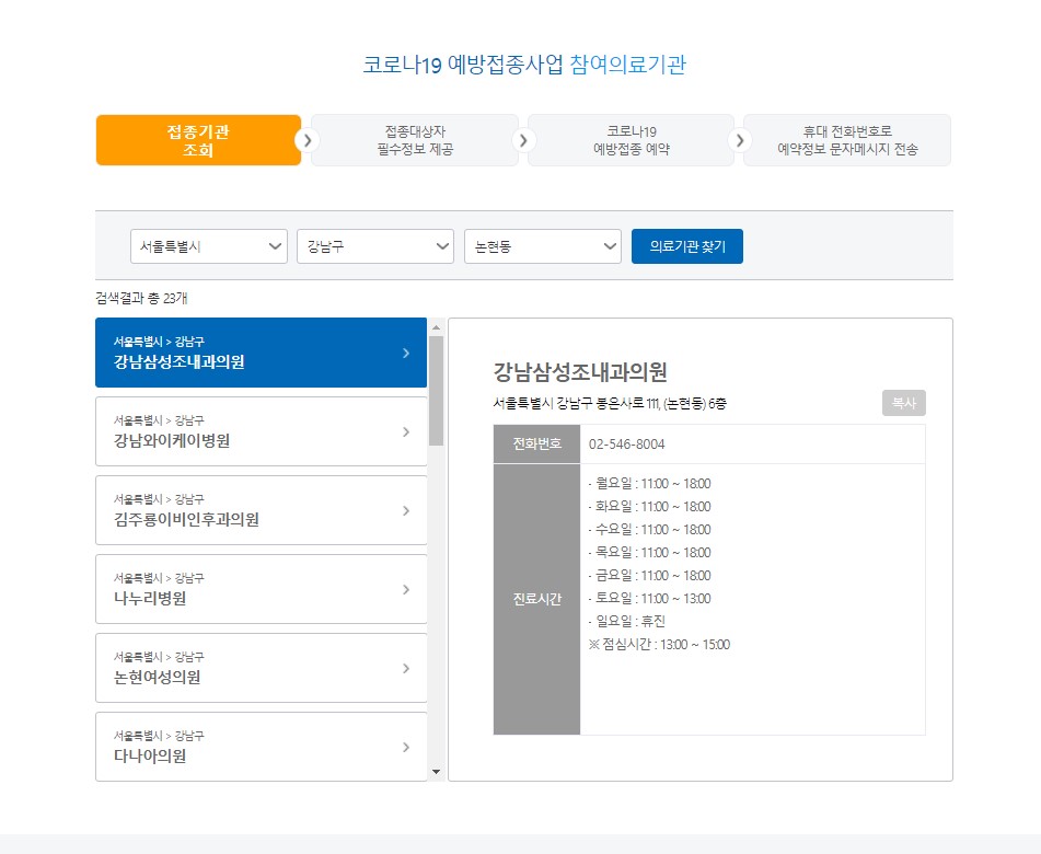 코로나19 백신 의료기관 검색