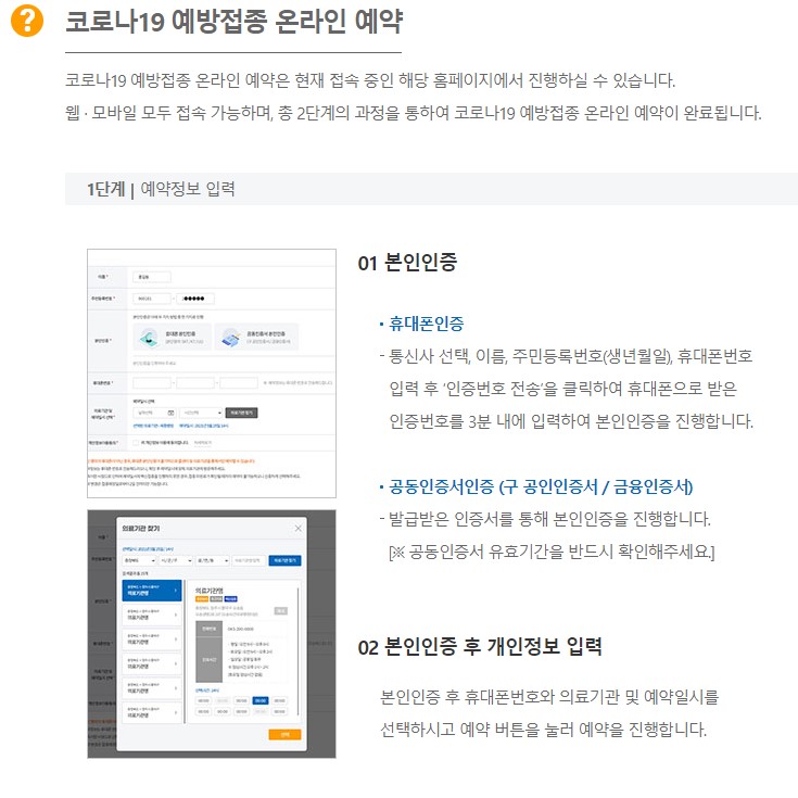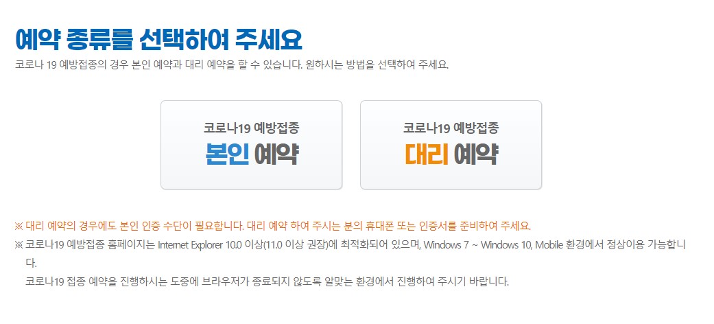코로나19 백신 본인 및 대리 예약