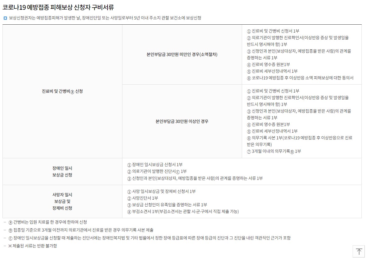 코로나19 백신을 접종후.. 부작용이 생길시 진료비 및 간병비를 신청할 수 있습니다. 거기에 장애인이 될 경우 사망할 경우 신청을 할 수 있다고 하는데.. 이건 말이 좀 많은데요.. 이튼저튼 사망자에 대한 인과관계를 증명하라.. 등등 너무 어려운게 많은데 백신으로 인해 부작용이 생기거나 아프거나 죽거나 하는 경우는 확실하게 보상을 해줬으면 하네요.. 서류에 대해서는 사진을 한번 읽어 보시면 될 것 같습니다.